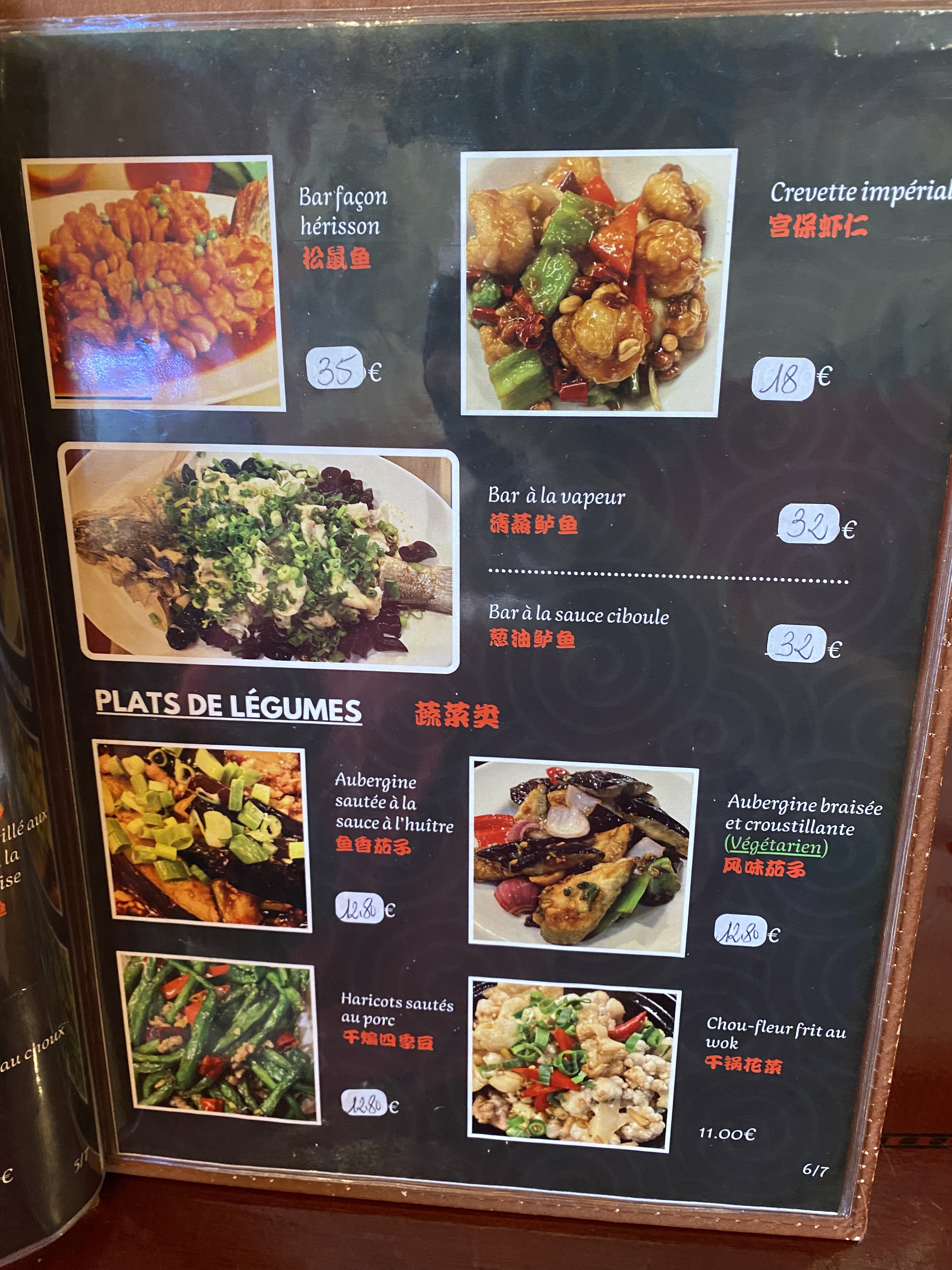 Excellent restaurant chinois qui propose des plats plus originaux (cuisine du Sichuan) à côté de plats plus classiques de restaurant chinois français. Tout était bon. Une vraie bonne surprise. Attention par contre, le restaurant a 2 cartes, l´une sous forme de dépliant 3 volets pour les plats les plus courants/occidentaux et l'autre sous forme de cahier avec d'autres plats dont certains sont moins accessibles au goût occidental (plus épicés, plats d'abats ou morceaux de viande avec des os etc.). N'hésitez pas à la demander si vous voulez plus de choix. C'est très bon. Dernier indice qui ne trompe pas : la salle est pleine de chinois et de couples mixtes.
