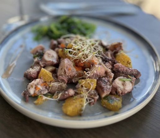 "Sans le savoir, nous nous sommes retrouvés pour l’ouverture de ce restaurant au dessus de cannes .. FABULEUX ! Pas sûr de pouvoir repasser comme cela à l’improviste sans devoir réserver dans les semaines à venir au vu de la qualité de l’endroit .. Une petite photo de mon plat : poulpes préparés Top ! Bravo encore à vous ! On repassera en Août ! 👍👏"