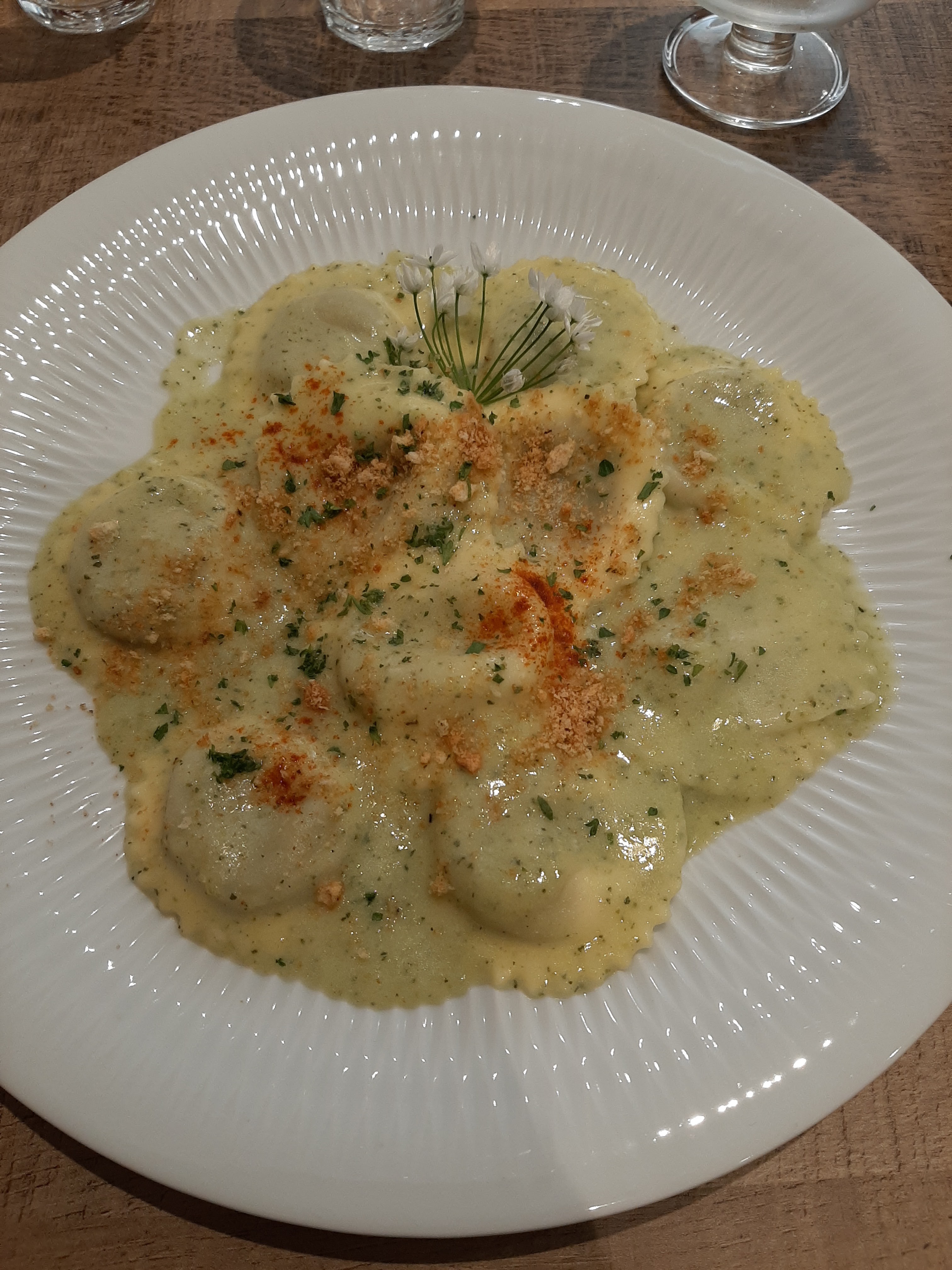 Des pâtes maison en quantité suffisante et un accompagnement savoureux. La gaufre au dessert est terriblement bonne le tout pour un tarif très abordable.