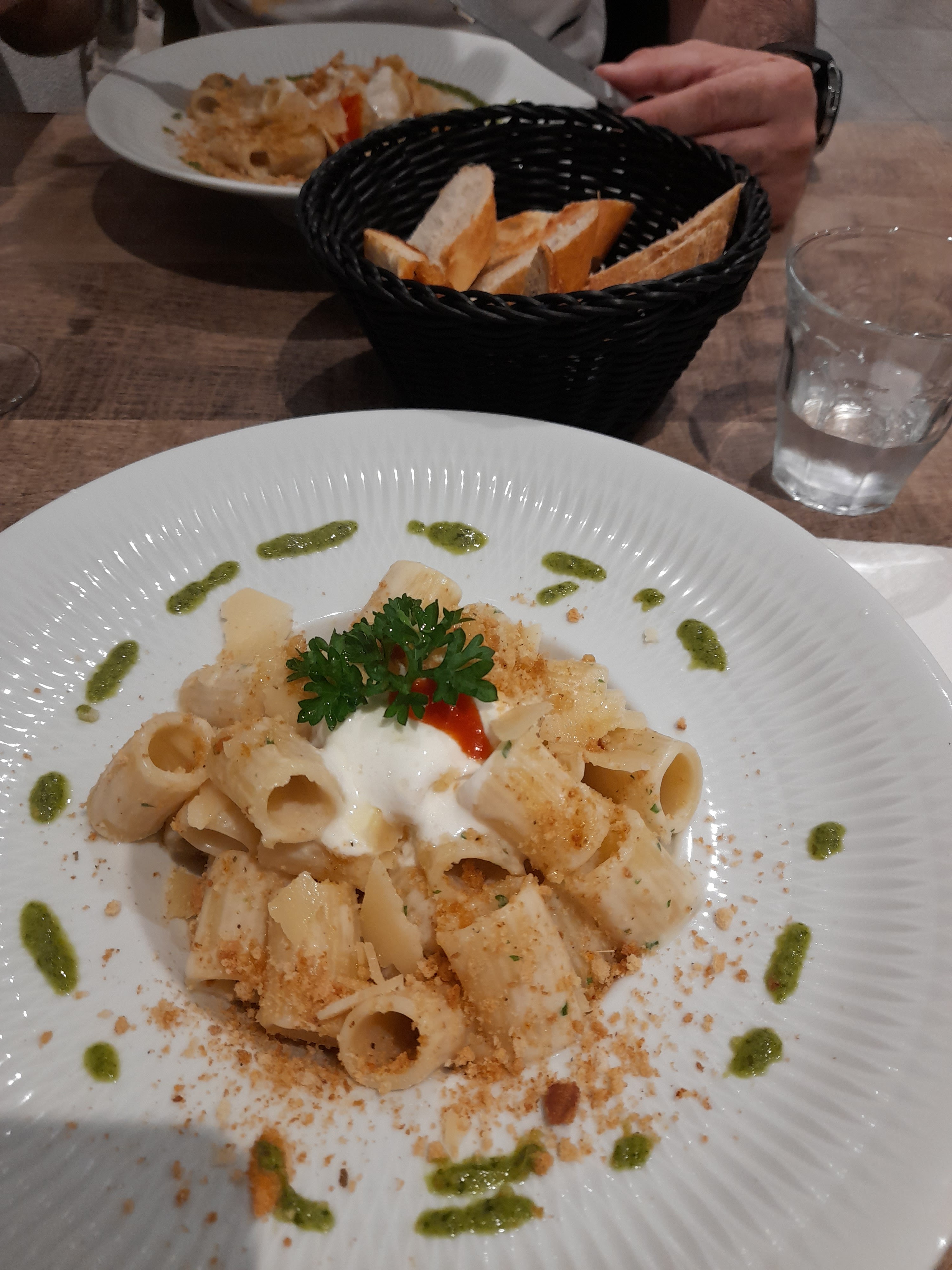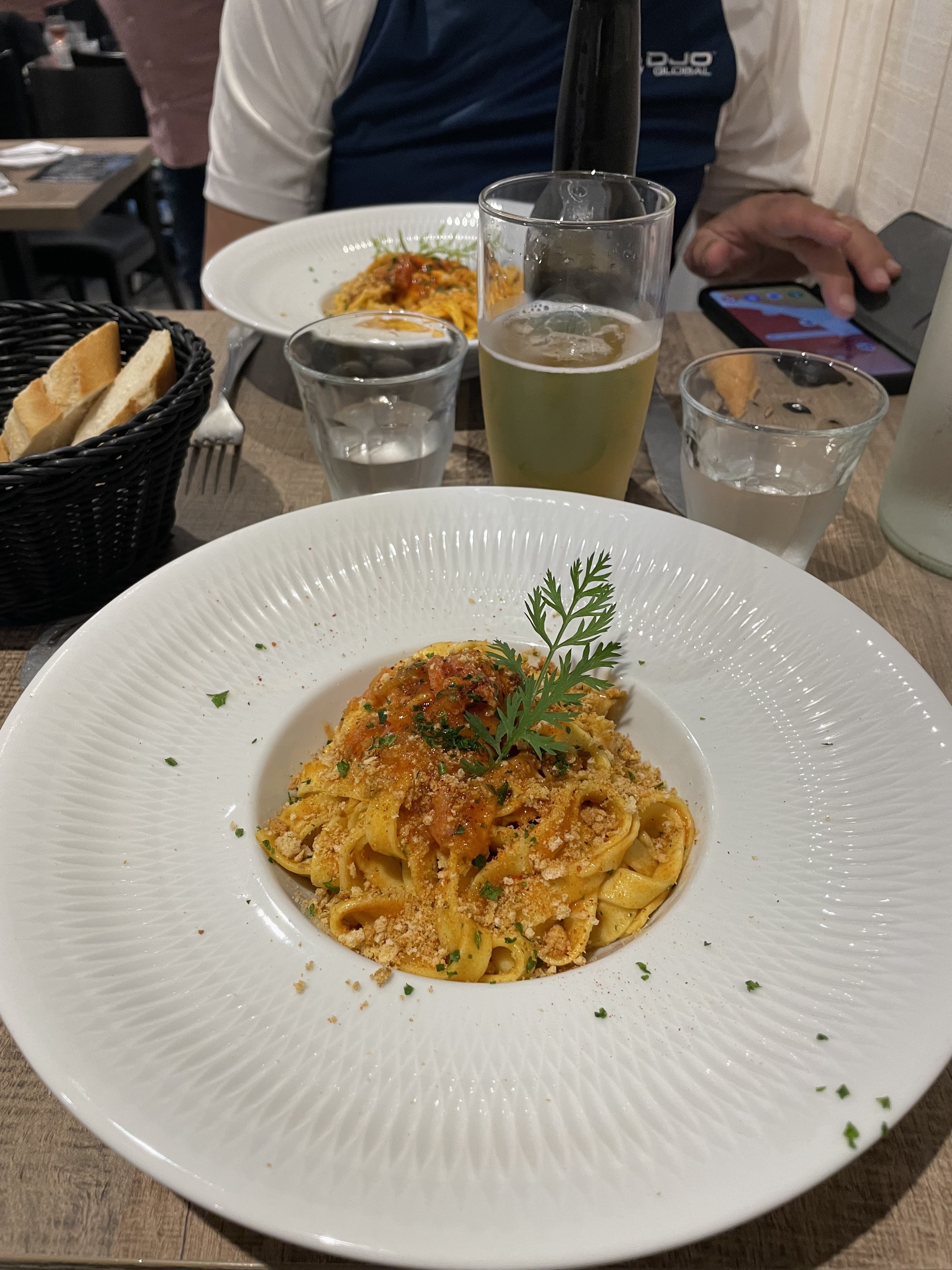 Lorsqu'un restaurant ne vend que des pâtes, l'attente minimale est que les pâtes soient cuites à la perfection, ce qui n'était pas le cas ici, elles étaient trop cuites. Le pain était industriel, la salade et le dessert sans intérêt.