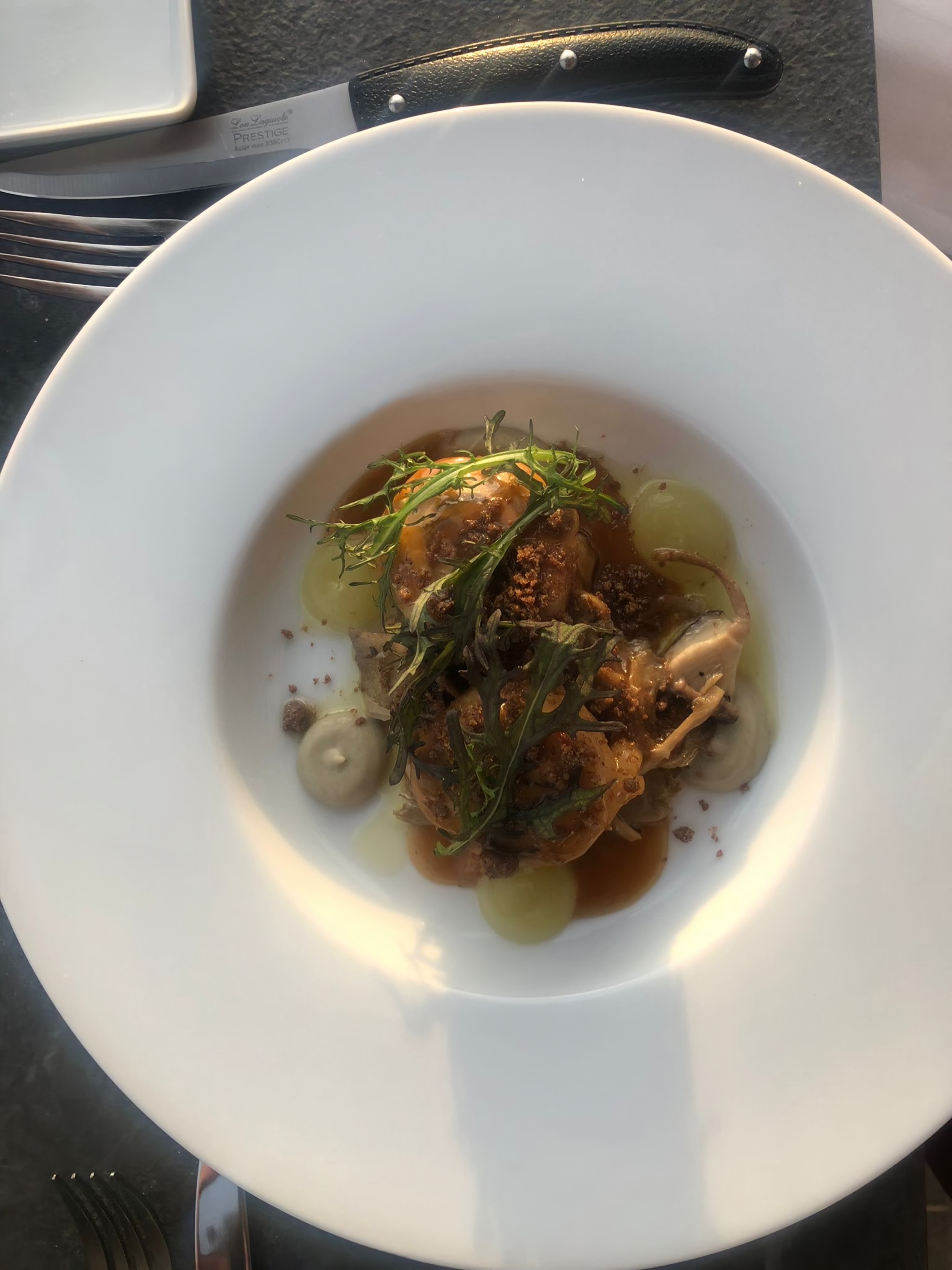 Cuisine gastronomique avec du goût de bonne qualité service impeccable personnel au petit soin je recommande