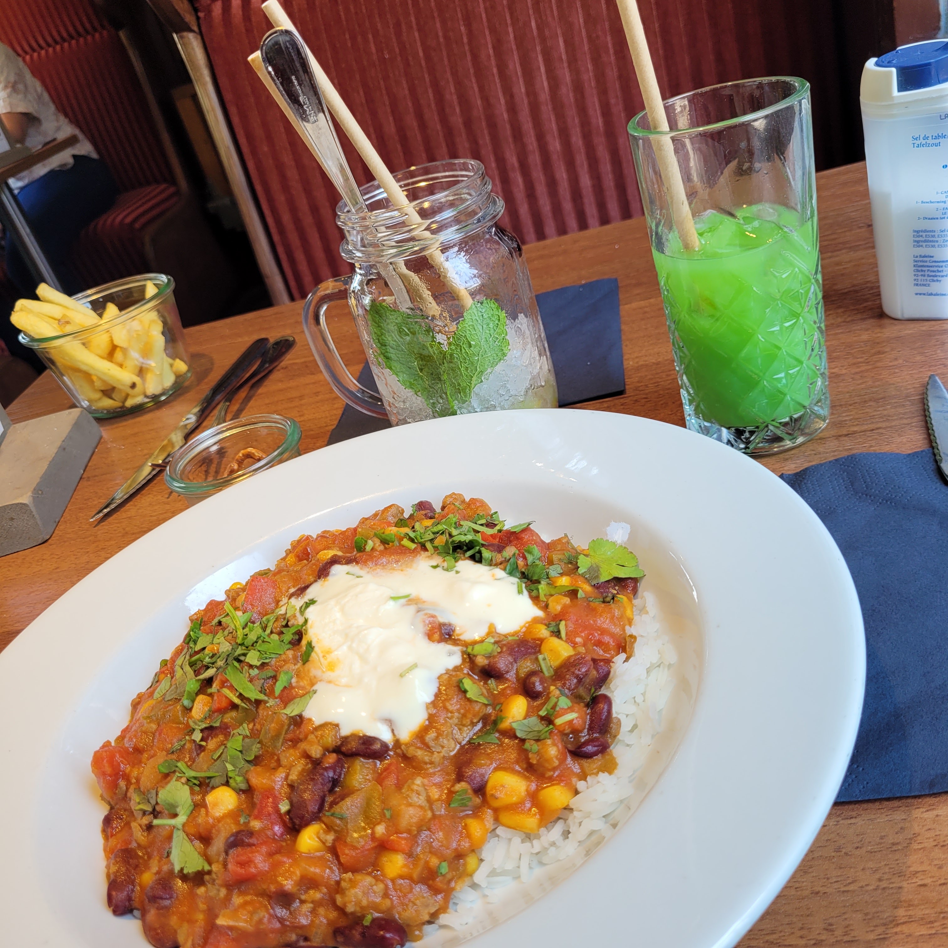 Très bien, formule avec plat + buffet entrées et desserts à volonté pour manger à sa faim, service irréprochable et dans la bonne humeur, cadre agréable, les plats sont très bons, copieux, la déco style gare et wagon de train est originale avec le petit train au plafond qui circule toutes les 20 minutes, un wagon de train aménagé en restaurant sur le côté sinon la salle ou la terrasse sont également appréciables, nous avions pris formule plat + buffet entrées et desserts, les buffets sont généreux, variés et très bons, problème, nous n'en pouvions plus après notre plat. Pas de problème la serveuse nous a annulé le dessert sur la note sans aucun soucis. Ah oui j'allais oublié, le mojito à la fraise très bon.