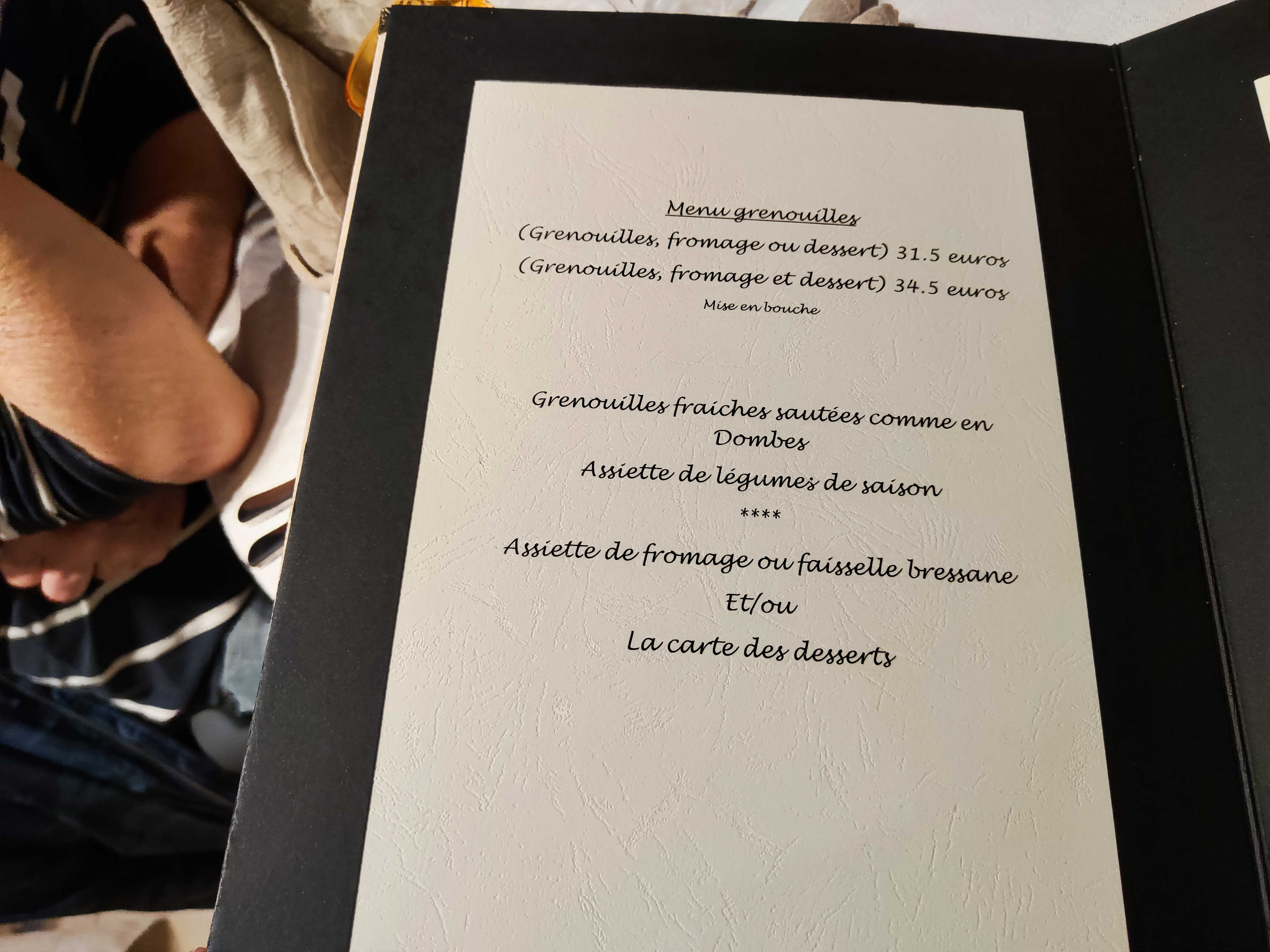 les grenouilles sont excellentes ..... les desserts bien réfléchis.... Le personnel, la direction très gentils, restaurant très accueillant
