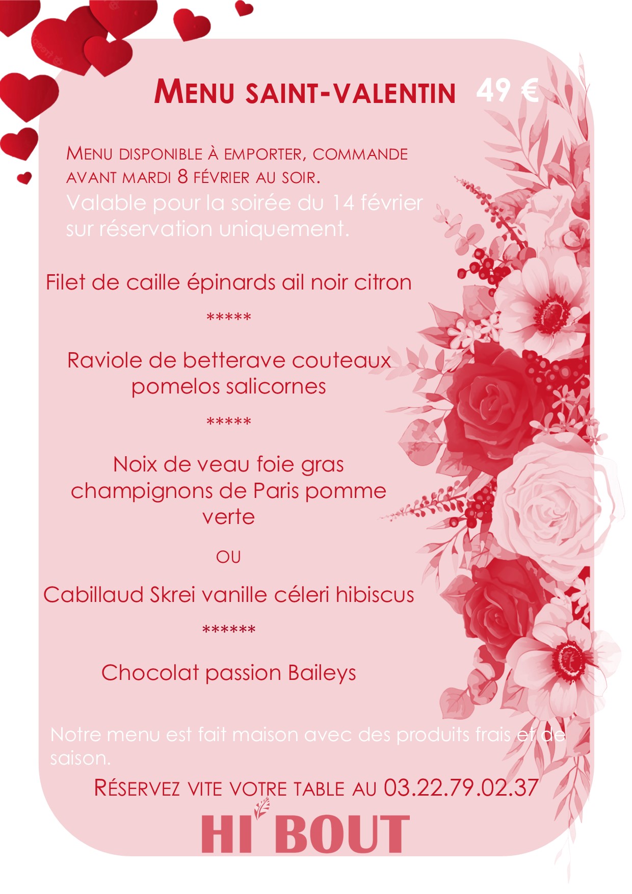 Merci d'avoir pris le temps de laisser ce commentaire. En effet, nous avons un nombre de plat du jour limité (environ 20). Comme expliqué lors de votre arrivée tardive, nous venons de commencer et souhaitons éviter le gaspillage alimentaire. C'est d'ailleurs pourquoi nous recommandons à tous les clients de réserver. En revanche, dans la formule évoquée vous avez le choix entre 2 plats, vous avez donc une alternative au plat du jour. Par ailleurs, nous ne pouvons pas vous laisser dire une information erronée, sur votre addition cela représente 3,60€ par personne en plus et non 50%. Si vous avez d'autres questions ou problématiques, nous sommes joignables au 03.22.79.02.37 ou par mail [email protected] Bien cordialement, Laura.