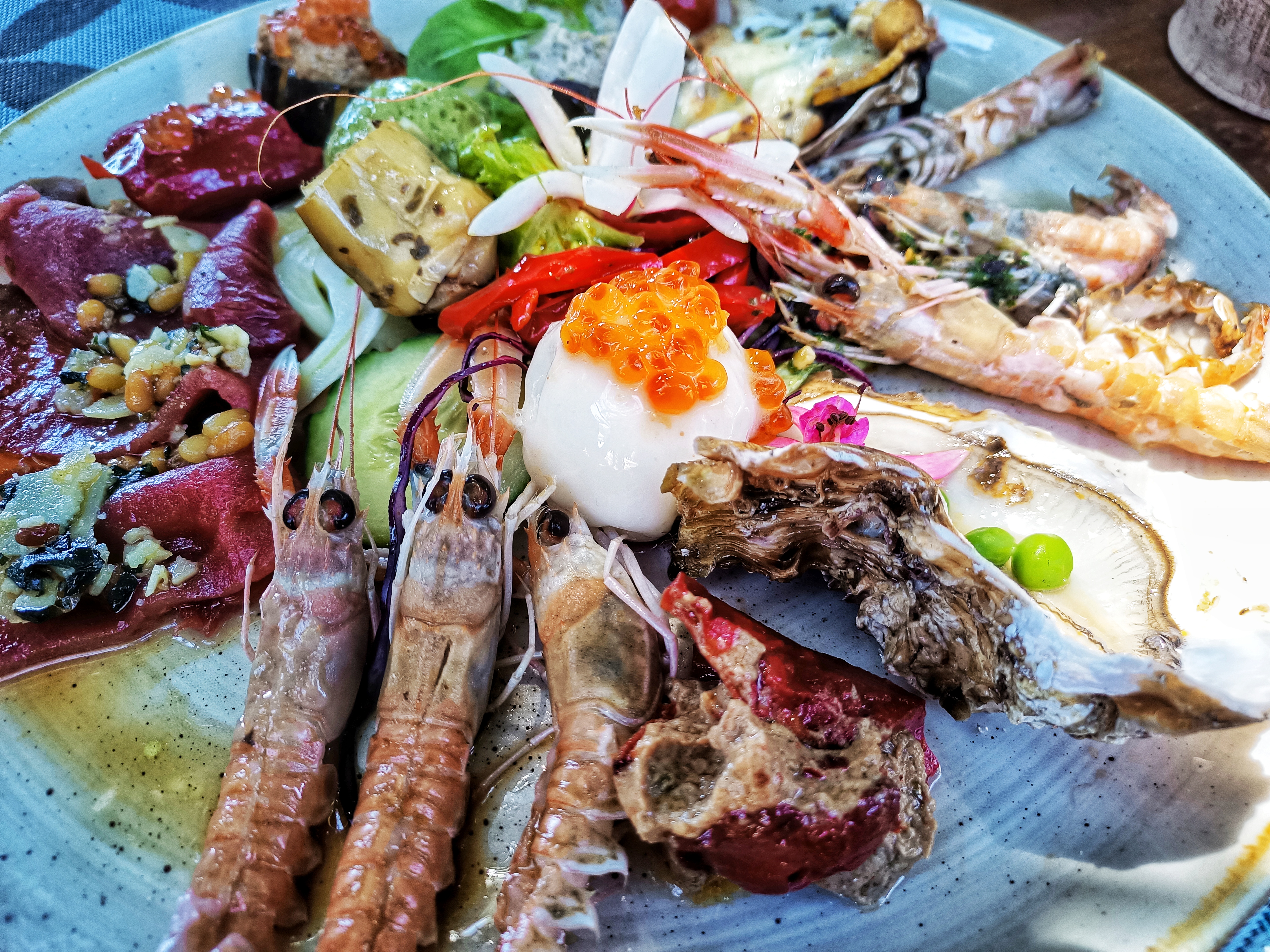 Mon compagnon a très bien mangé. L’ambiance est zen très agréable. Le serveuse sont très sympathiques. Malheureusement j’ai fait le mauvais choix en prenant l’assiette de crustacés et fruits de mer alors que tous les autres plats semblaient délicieux.. En effet, les langoustines avaient la taille de crevettes. Du coup elle n’étaient pas cuites et n’avaient pas de chair .. Je m’attendais à de belles langoustines. J’ai été extrêmement déçue les moules en revanche étaient énormes ce qui n’est pas très agréable . Quant aux gambas … pour un plat à 35 € je ne me suis guère régalee. Je ne comprends pas que l’on serve ou même que l’on pêche des langoustines de cette taille.