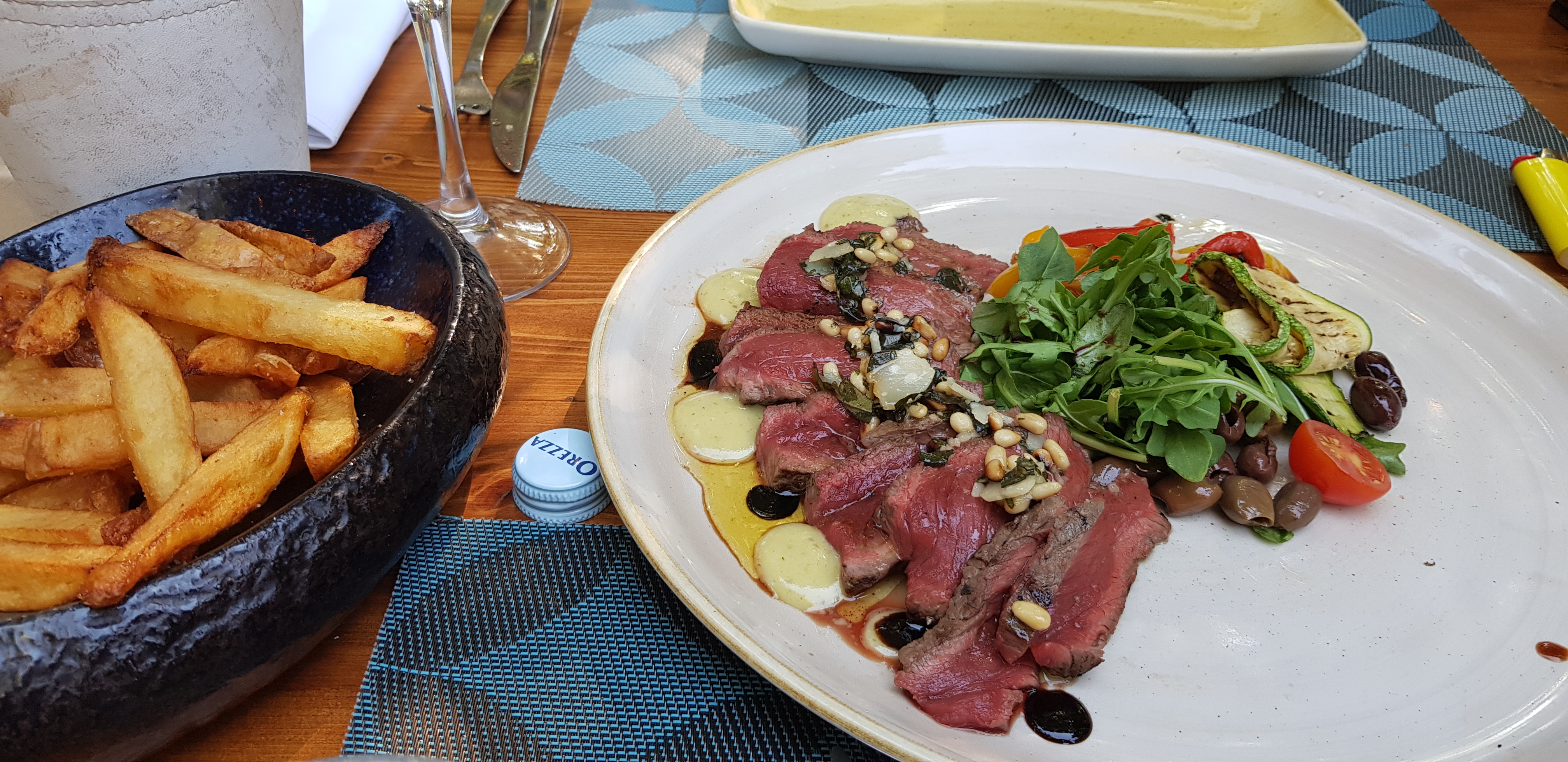 Le problème de ce restaurant est qu’il manque de constance. J’y suis allée 4 fois en tout. Déçue 2 fois, satisfaite 2 fois. J’ai mangé hier le même plat que j’ai mangé en Octobre, la tagliata de bœuf. Je me suis régalée en octobre avec un très beau morceau de bœuf bien cuisiné. Hier il s’agissait d’une entrecôte grasse, coupée en lanières et sans saveur. ( si j’avais voulu une entrecôte, elle est à la carte …Photo a l’appui, de mon plat d’octobre, la personne au service en a convenu: en effet, rien à voir! Est ce que le jour a une importance ? En tout cas la qualité du dimanche n’est pas celle du samedi.. Un geste autre que le digestif qui est offert dans à peu près tous les restaurants aurait été apprécié. Encore une fois attention à la constance. C’est important, surtout quand l’hiver il y’a peu de restaurants ouverts et qu’en plus les prix sont assez élevés. Peut être le moment de fidéliser et de soigner la clientèle locale.