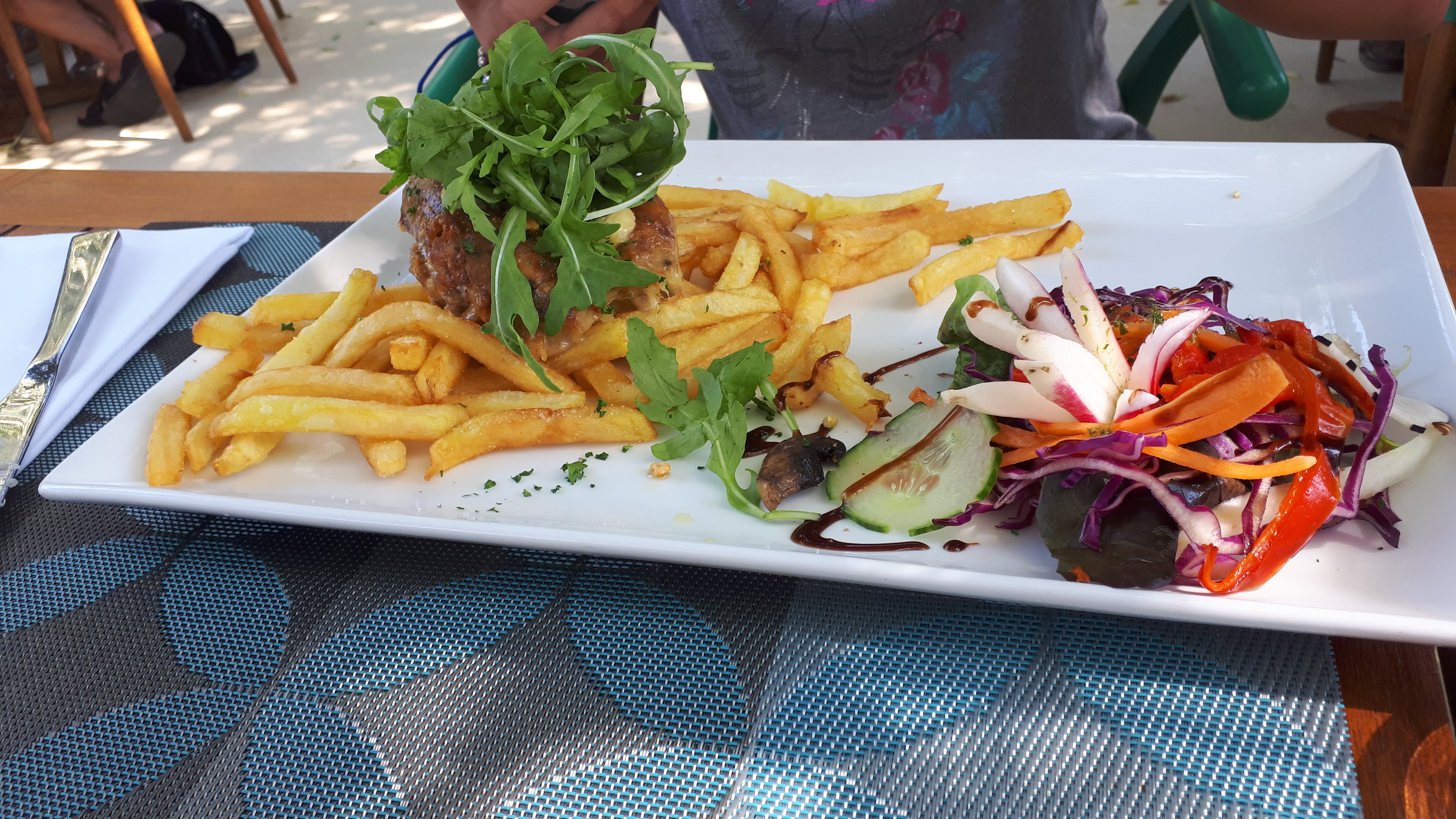 Bien que le quartier autour du restaurant n’est pas spécialement agréable, la jolie terrasse ombragée, la décoration et la sympathie du personnel rendent le lieu agréable. La carte est assez légère et les prix dans une fourchette moyenne-haute mais les plats sont très agréablement présentés et savoureux. Certaines combinaisons sont très inattendues et pourtant agréables en bouche (Burger au steak de thon…). Je recommande également les desserts, et particulièrement les crèmes glacées maison qui sont très bonnes. Petit bémol sur les plats, boissons ou encore vin qui n’étaient plus disponibles malgré qu’affichés sur la carte en ligne (peut-être la mettre à jour au fur et à mesure) ou encore le burger qui vient avec un autre pain que celui annoncé (personnel très sympathique et excusant cependant). Les plats sont donc très bons et très bien présentés, les prix restent assez élevés (mais les ingrédients sont indiqués et affichés comme locaux, cela expliquant le positionnement tarifaire), je regrette également les quantités sur certains plats (pas beaucoup de frites avec les burgers par exemple). Cependant dans l’ensemble le repas était une expérience agréable que je recommande !
