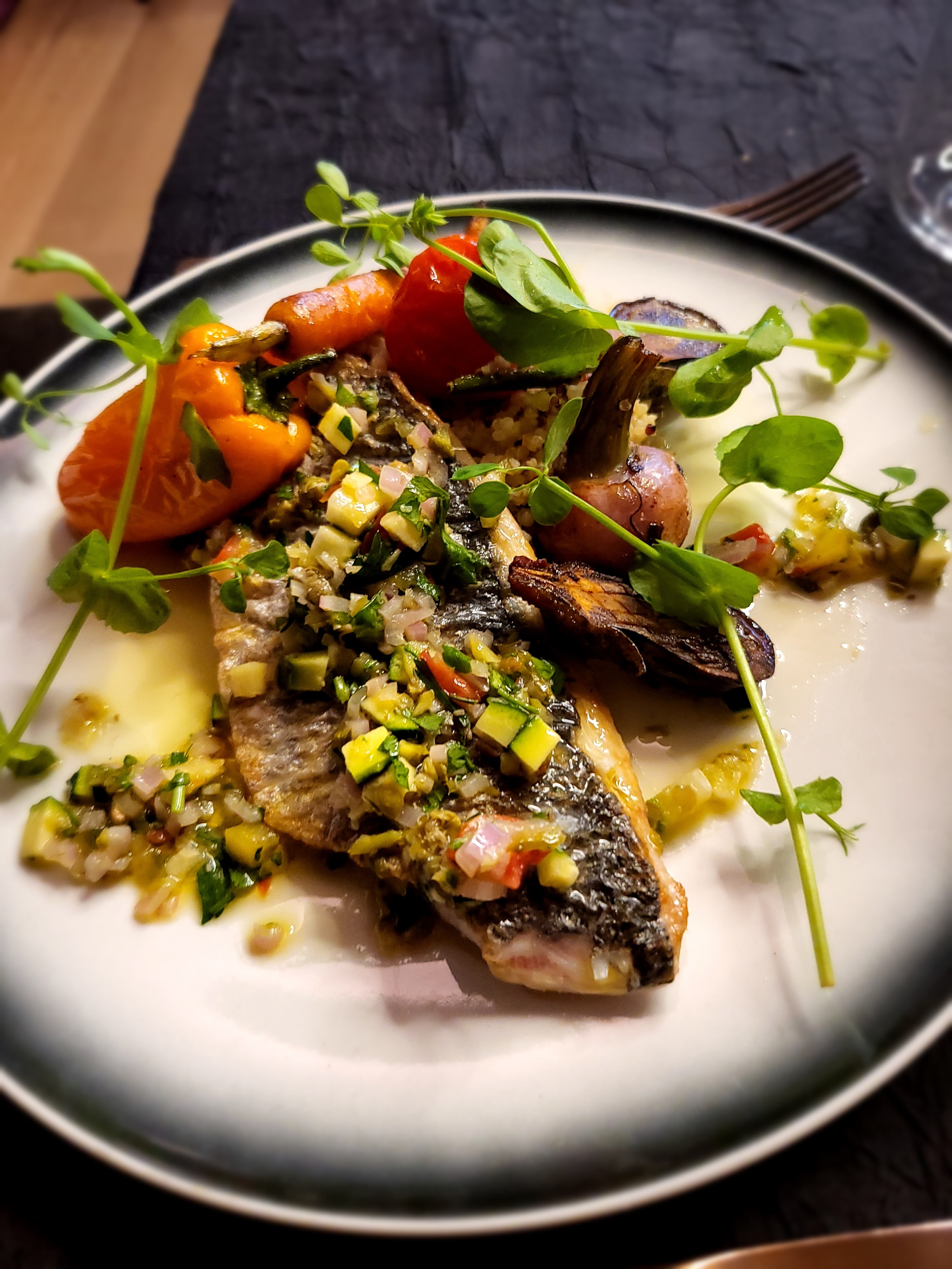 Personnel accueillant, cadre agréable mais il est regrettable qu’aucune option végétarienne soit proposée au menu. A l’aune de 2022, proposer seulement une assiette de légumes à une personne végétarienne est peu acceptable. Je tiens, néanmoins, à relever que l’on m’a offert la possibilité de retirer la touche de viande dans le plat de poisson. C’est une aimable attention. Il faut toutefois souligner que la présentation des plats est soignée, les produits de qualité et les recettes savoureuses.
