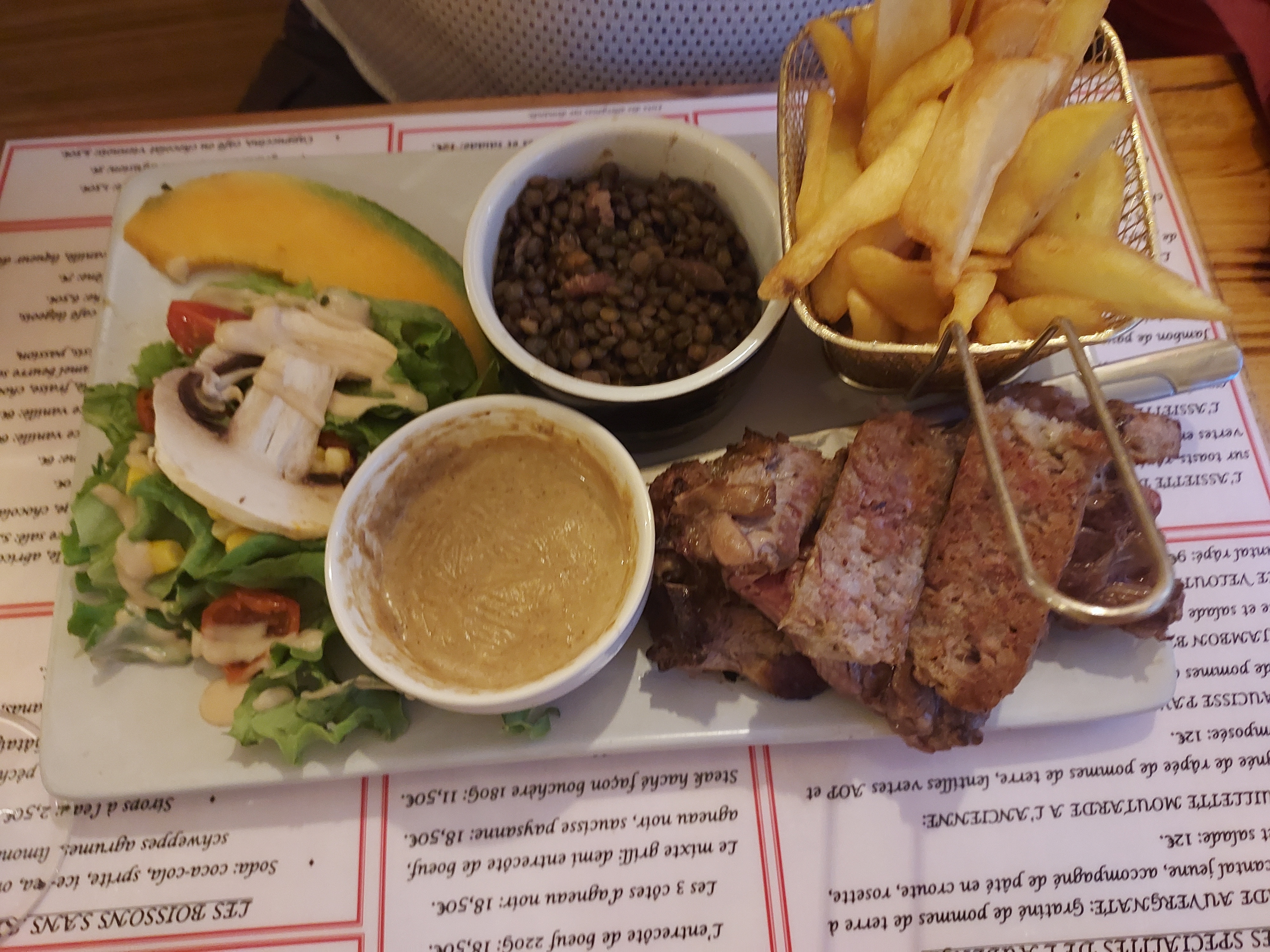 Truffade , assiette du velay et cotes d agneau nickel. Lentilles très bonnes. Prix plus que démocratique