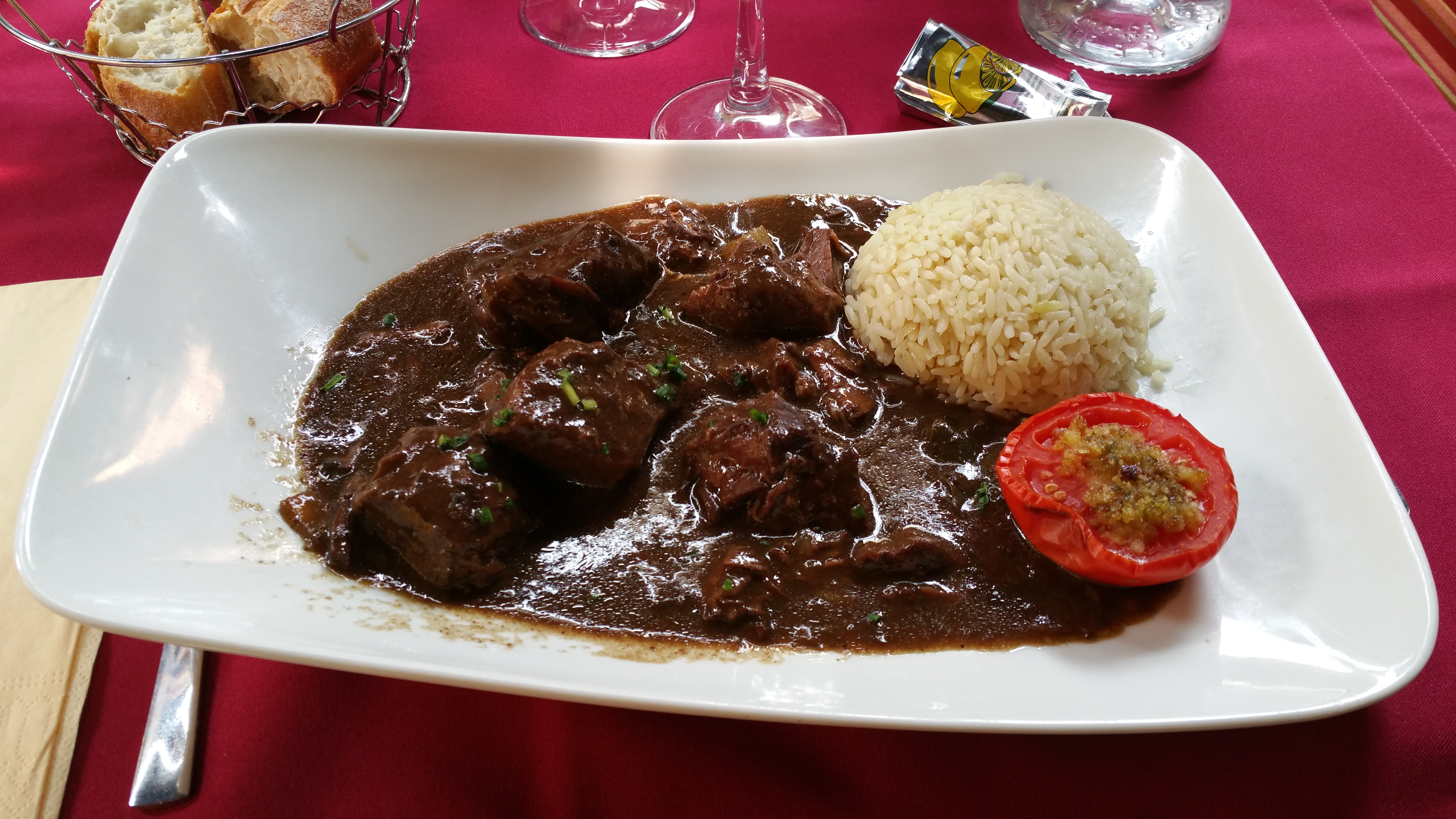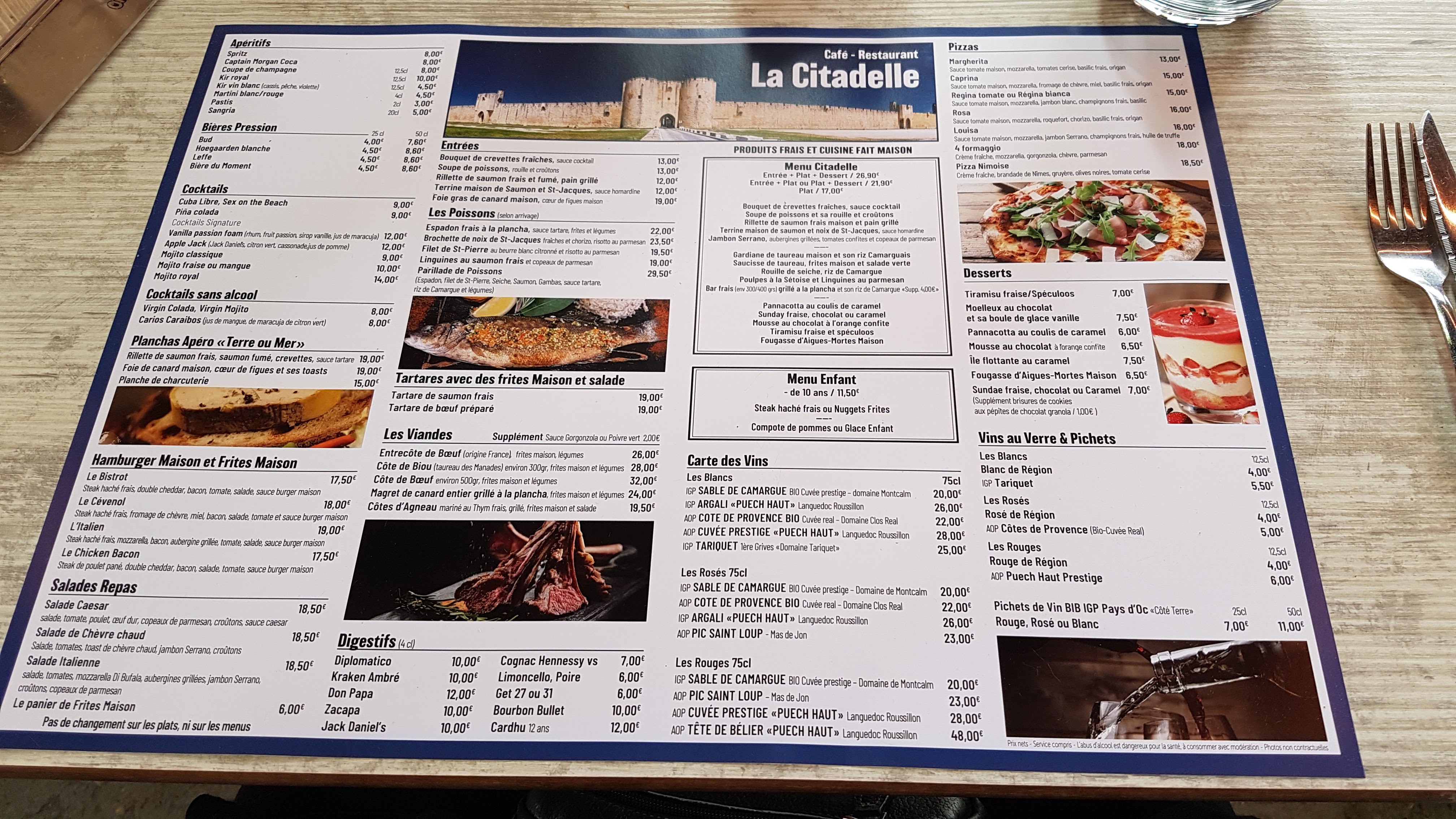 Nous y avons mangé. Un T Bone de veau sauce aux cèpes (300g) , une gardianne de taureau, le tout arrosé d'une carafe de rosé (50cl). Service rapide. Très Bien. Le tout pour 48 €. Nous y reviendrons.