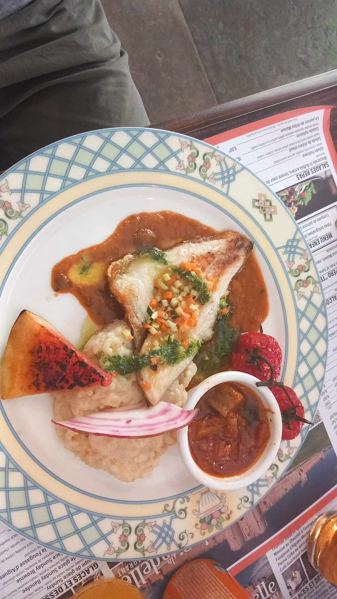 Nous avons pris le pavé de saumon et les St Jacques et c'était excellent ! Aucun regret. Mention spéciale a Loic le serveur pour sa gentillesse et son sourire et bravo à tous car avec le deluge de pluie qui s'est abattu sur la terrasse, tous ont gardés le sourire. Nous reviendrons avec grand plaisir 👍