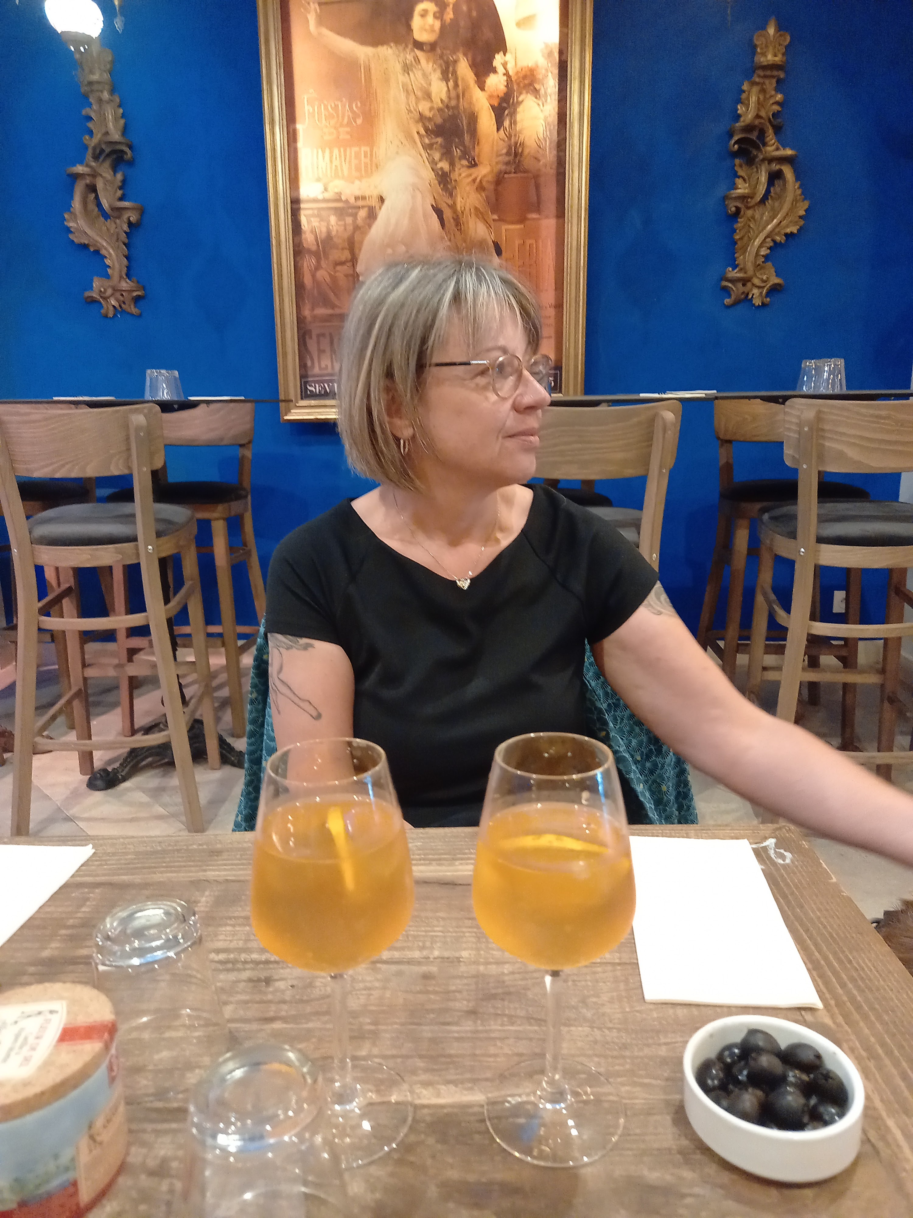 Cuisine : Brochette de noix de st jacques et chorizo snacké ça donnait envie jusqu'à ce que ça arrive, chorizo pas bon, noix de st jacques froides, la ratatouille sûrement en boîte pas bonne non plus, le buternut pas cuit difficile à couper... Pour mon invitée, la sauce chèvre miel (marron) dans un ramequin réchauffée au micro ondes avec la pellicule par dessus... Ne parlons pas des desserts ! Tiramisu = mascarpone, miettes de Spéculoos et une cuillère de Nutella et la panna Cotta insipide et nous ne sommes absolument pas difficile Ambiance : le personnel au fond du resto debout à attendre, pas souriant, ni avenant. Une serveuse qui traine des pieds quand elle vient en salle prendre les commandes. Les tables d'à côté qui viennent à peine d'avoir l'apéro ont leurs repas qui arrivent. Sinon la décoration est sympa et le lieux assez propre.