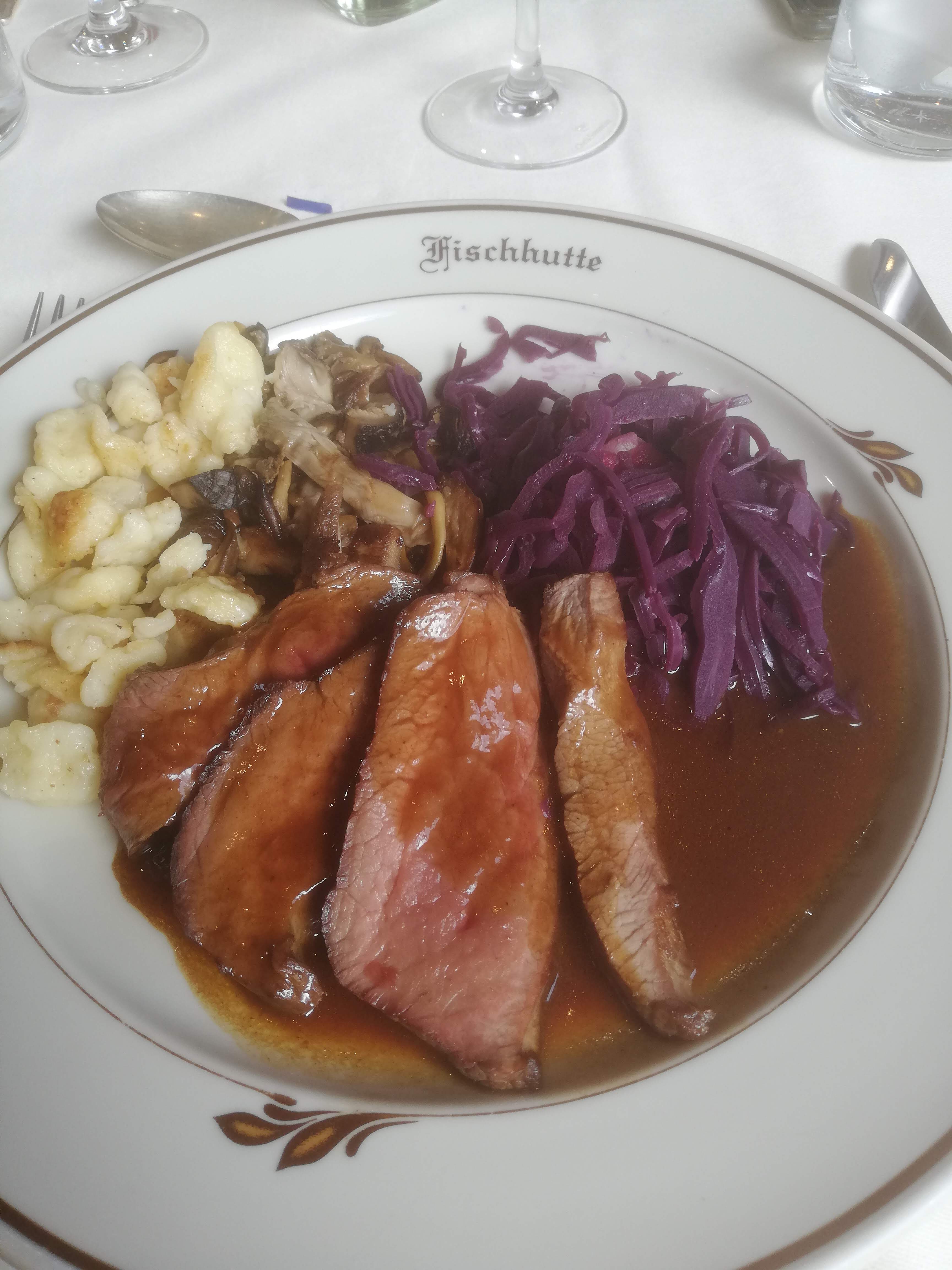 Après une randonnée, nous sommes passés devant ce restaurant. Ça valait la peine. Le plat de gibier était délicieux et la portion était très grande. Les entrées de carpaccio et de foie gras valaient également leur prix. Sinon, je recommande de commander une bouteille de vin au lieu des petits verres. C'est moins cher. Vous pouvez consulter le menu sur la page d'accueil.