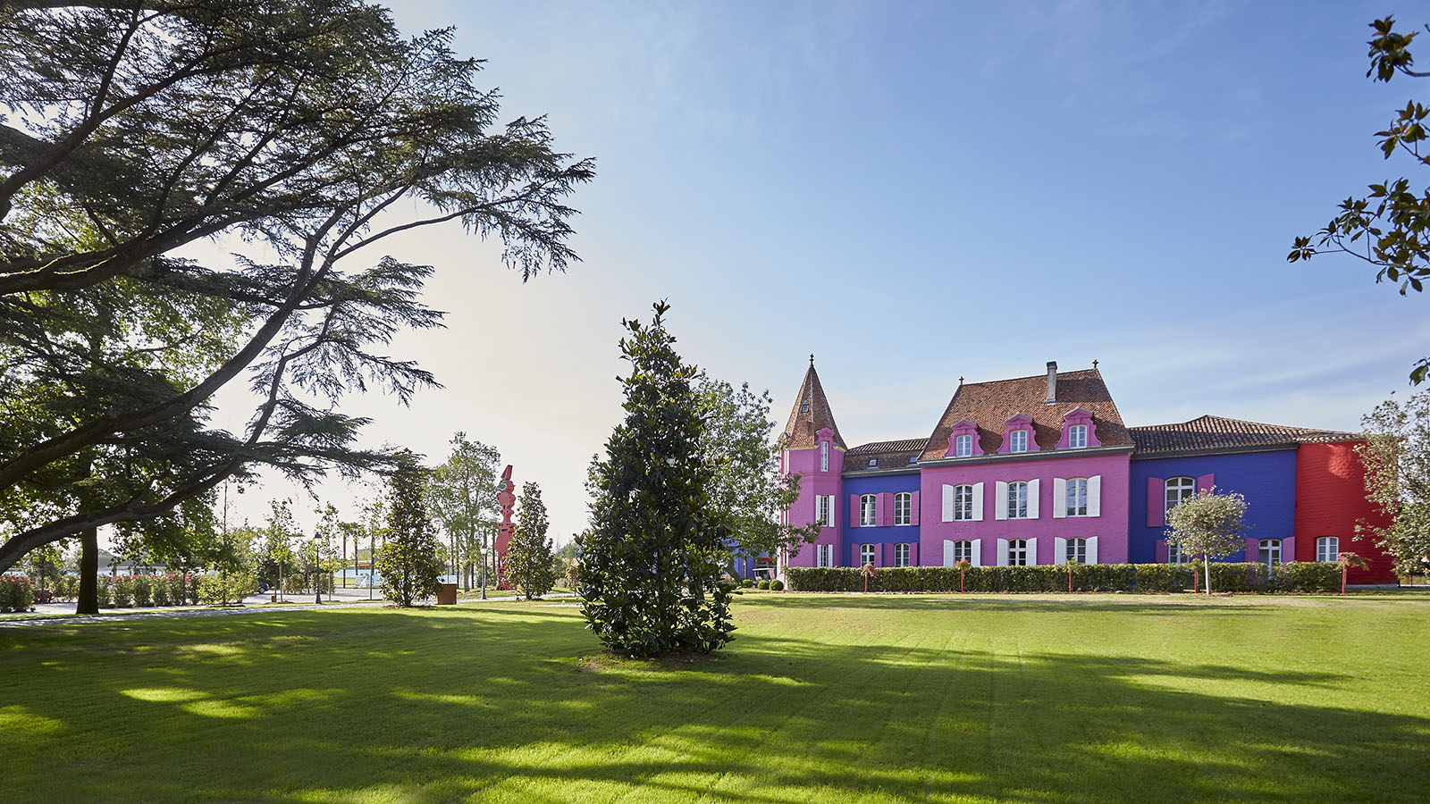 Le parc est sympathique et ouvert a tous... Les couleurs du chateau meme si cest peu habituel dans nos contrees apportent plus que s il etait classiquement renove meme si je peux comprendre que cela peut surprendre voire choquer les personnes qui ont besoin de stabilite. Il y a plusieurs lieux de restauration pour tous les budgets... le bistro est peut etre le meilleur rapport qualite prix. Monsieur ginestet nous fait regulierement cadeau de fetes gratuites ouvertes a tous... Merci