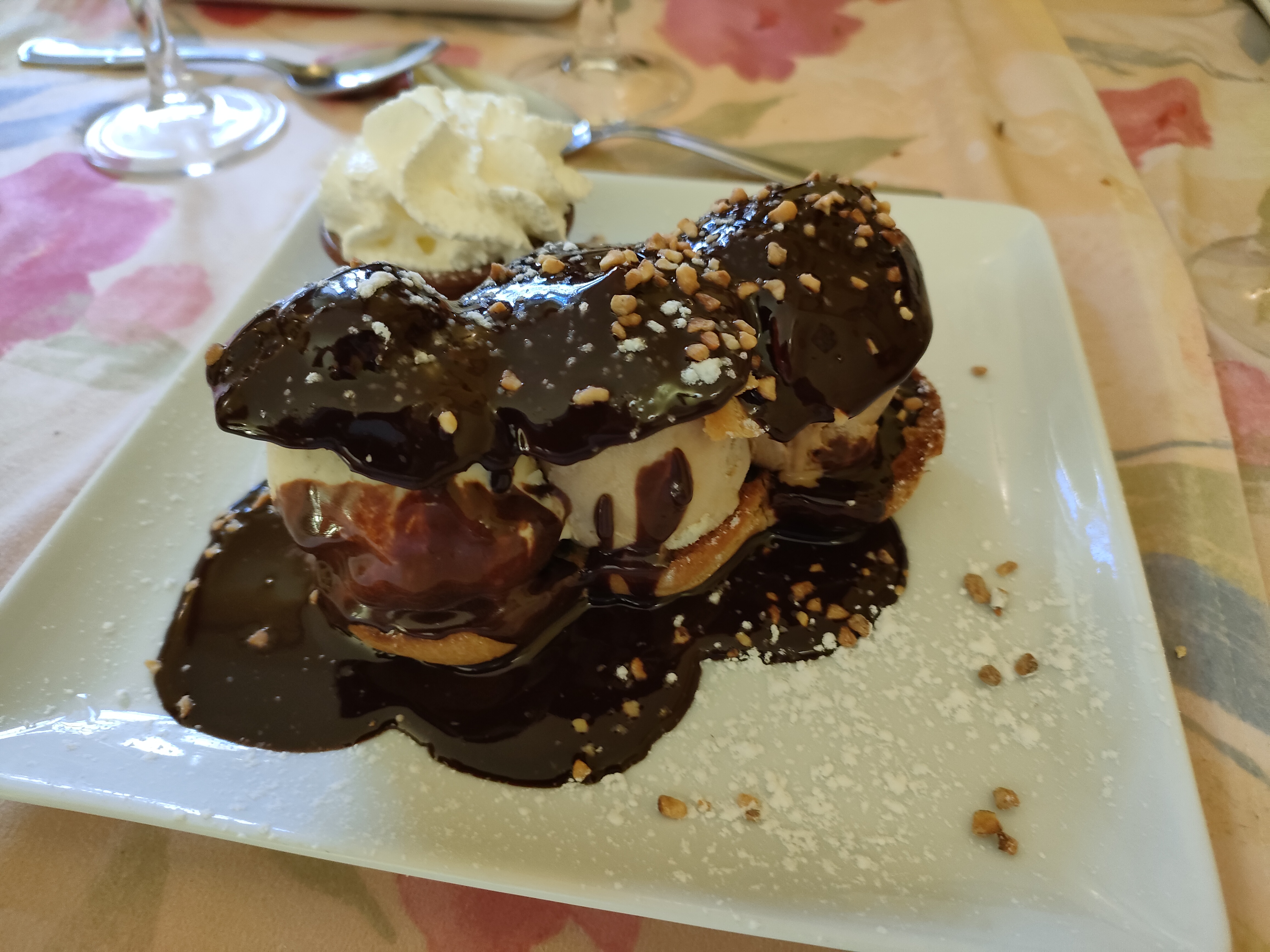 Super moment sur la belle terrasse ombragée, les enfants et les chiens y sont les bienvenus :) On a très bien manger et les enfants aussi avec l’assiette spéciale. Des desserts de folie Nous recommandons cette pépite