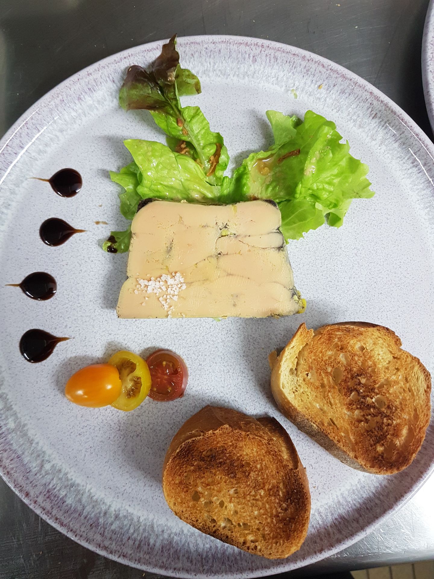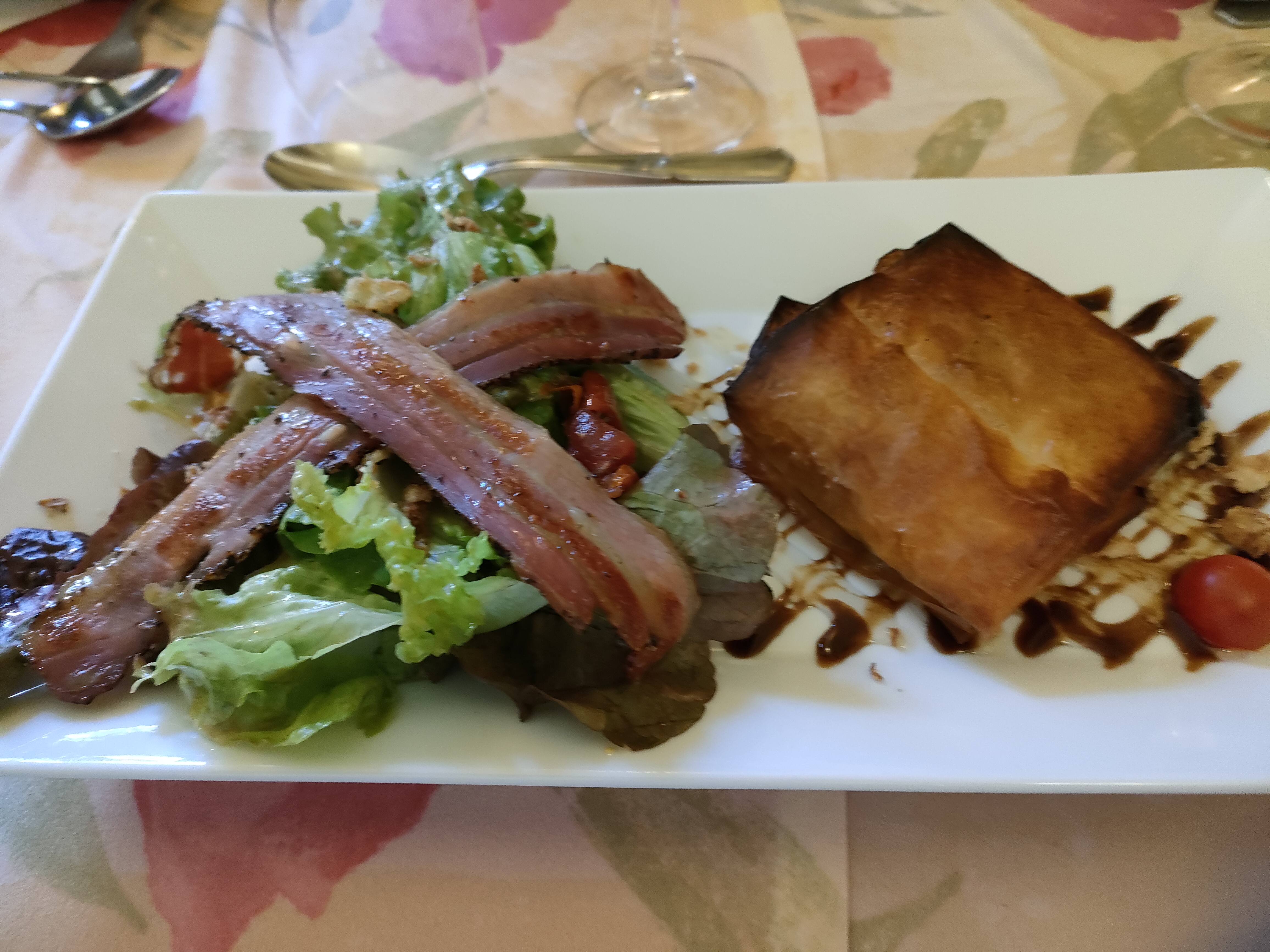 De passage dans ce petit village des landes en rentrant du bord d océan, nous avons été attirés par cette petite terrasse forte agréable, nous avons trouvé un bon accueil, une carte des menus agréable, attention par contre en weekend il faut de préfèrance réserver, nous sommes arrivés un dimanche de septembre restaurant bien rempli, une attente correct entre les plats. Un menu a 23 euros copieux et très bon, je recommande ce restaurant aux personnes de passage, vous ne serez pas déçu En photo l entrée du menu: très bon
