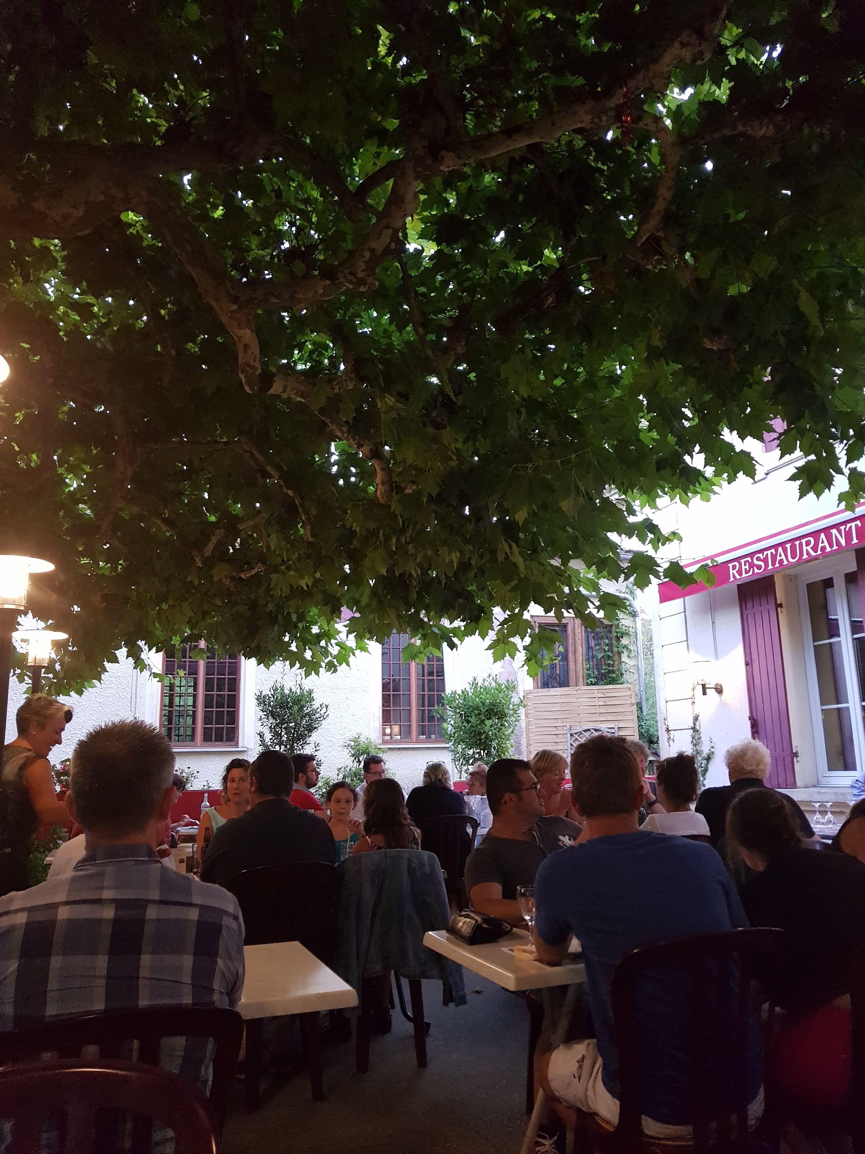 Établissement typique d'une certaine douceur de vivre à la française. Beaucoup de charme avec une terrasse ombragée par des platanes centenaires. Bonne cuisine et service souriant et efficace.