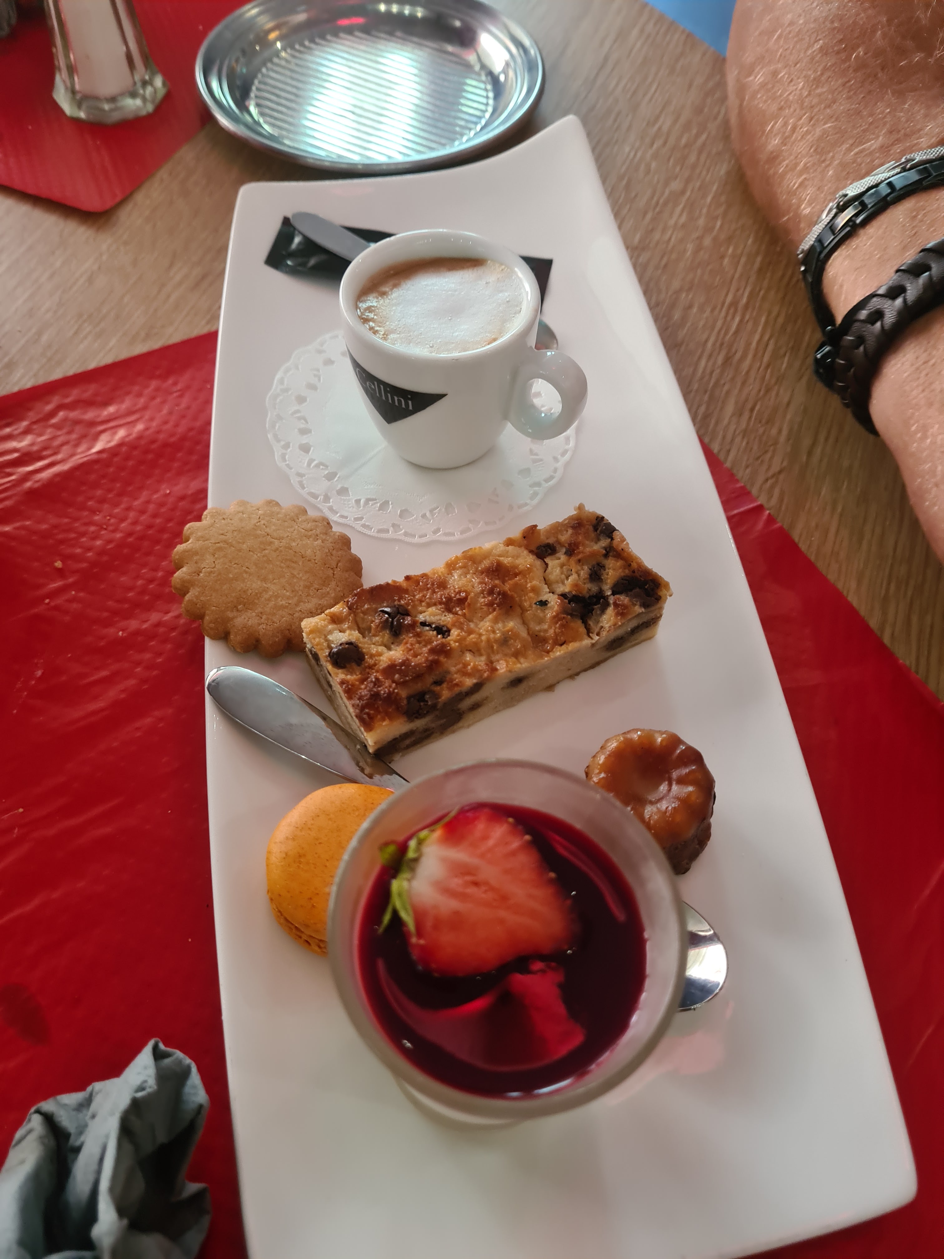 Très bon, produits locaux mais un peu cher. Le café gourmand comptait 5 mignardises sur la carte et il n'y en avait que 4 dans l'assiette. Personnel très sympathique