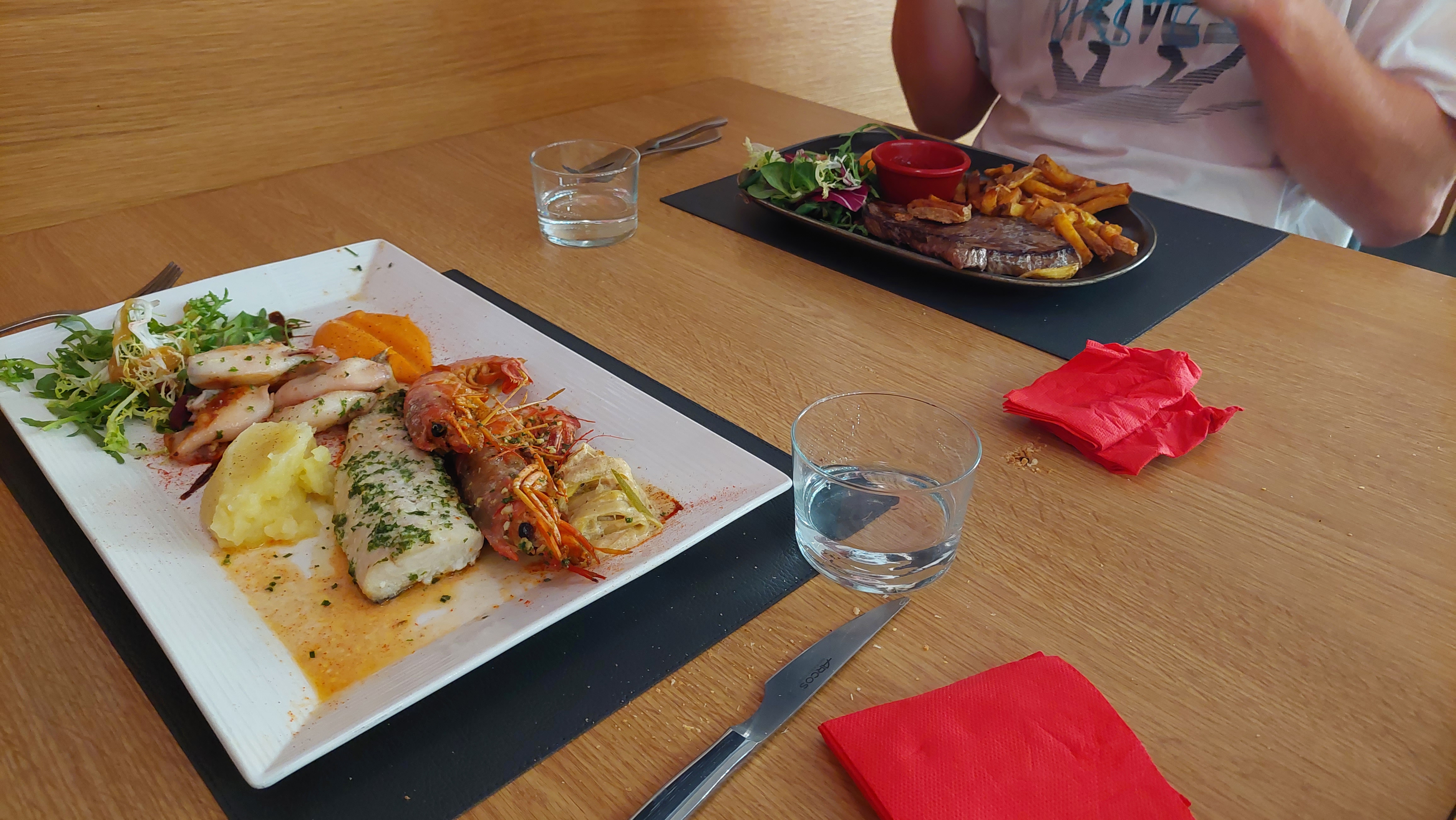 Bon rapport qualité-prix. Pris à la carte une trilogie de la mer, excellente ! Poisson moelleux, assiette copieuse. Sans oublier le gâteau basque à la crème. Ne paie pas de mine extérieurement, mais salle climatisée et terrasse à l'arrière du restaurant.