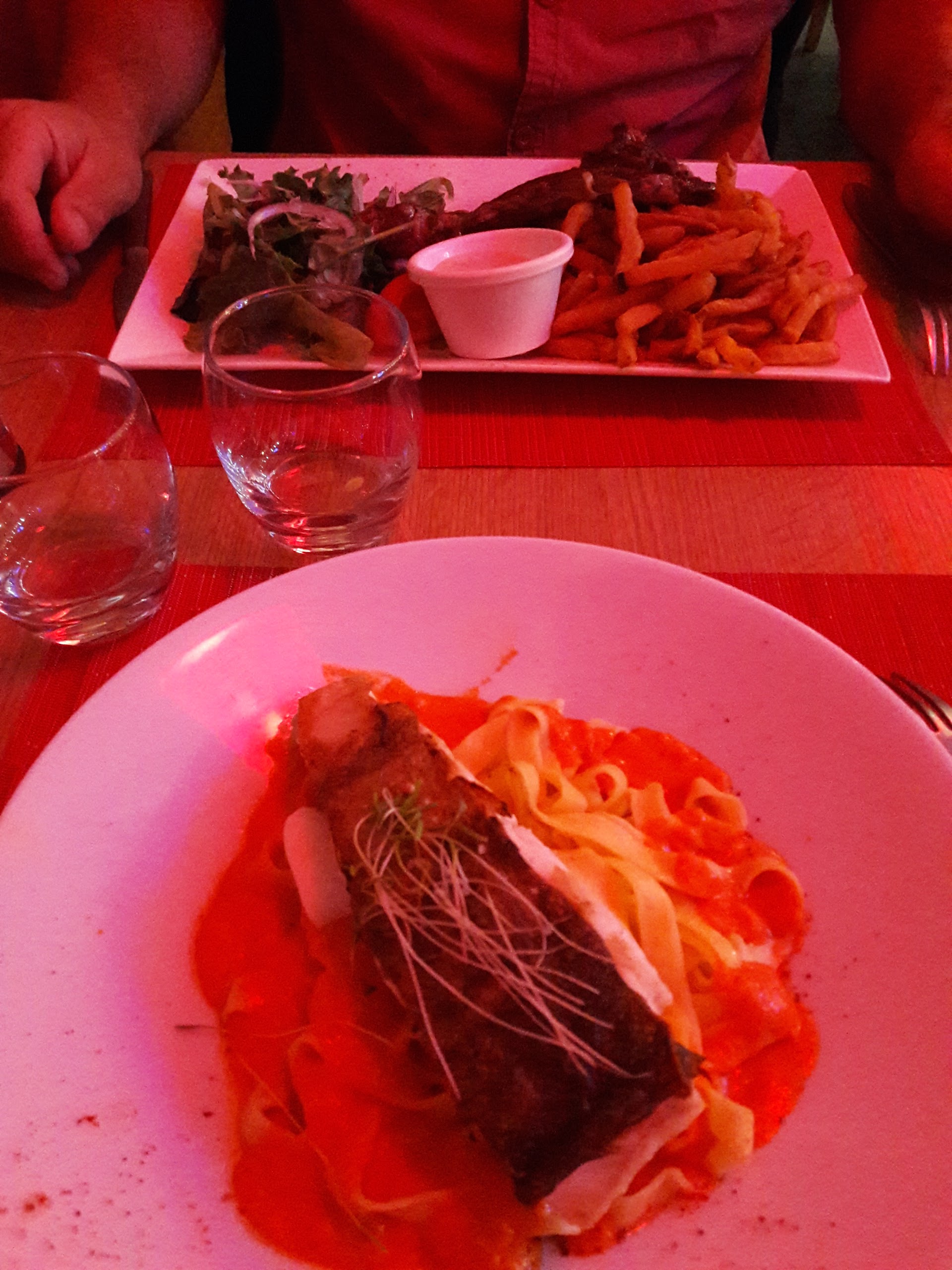 Très bien accueillie Axoa avec les frites très bon Et j'ai aperçu les assiettes des voisins de table, très jolies aussi 😉