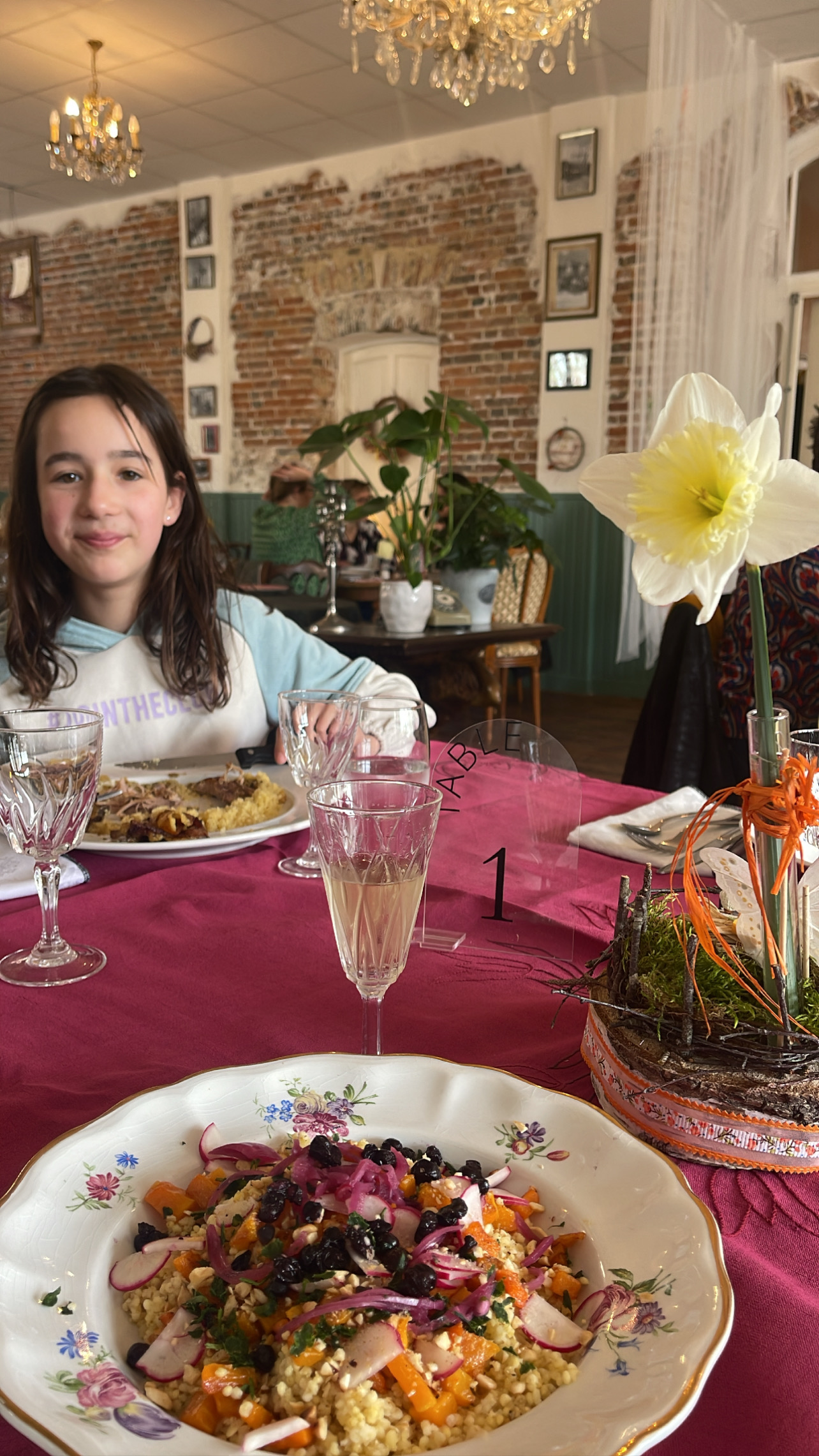 Mais quelle merveilleuse découverte. De passage dans la région, nous avons trouvé ce petit bijou niché dans une ancienne école. Ce lieu, confié aux mains expertes des Frangines ont su créé un lieu raffiné, délicat où nous avons pu partagé une cuisine des plus goûteuses faite de produits locaux. Comme nous, notre petit-fils a adoré, particulièrement leur mocktail. A faire et refaire sans modération.
