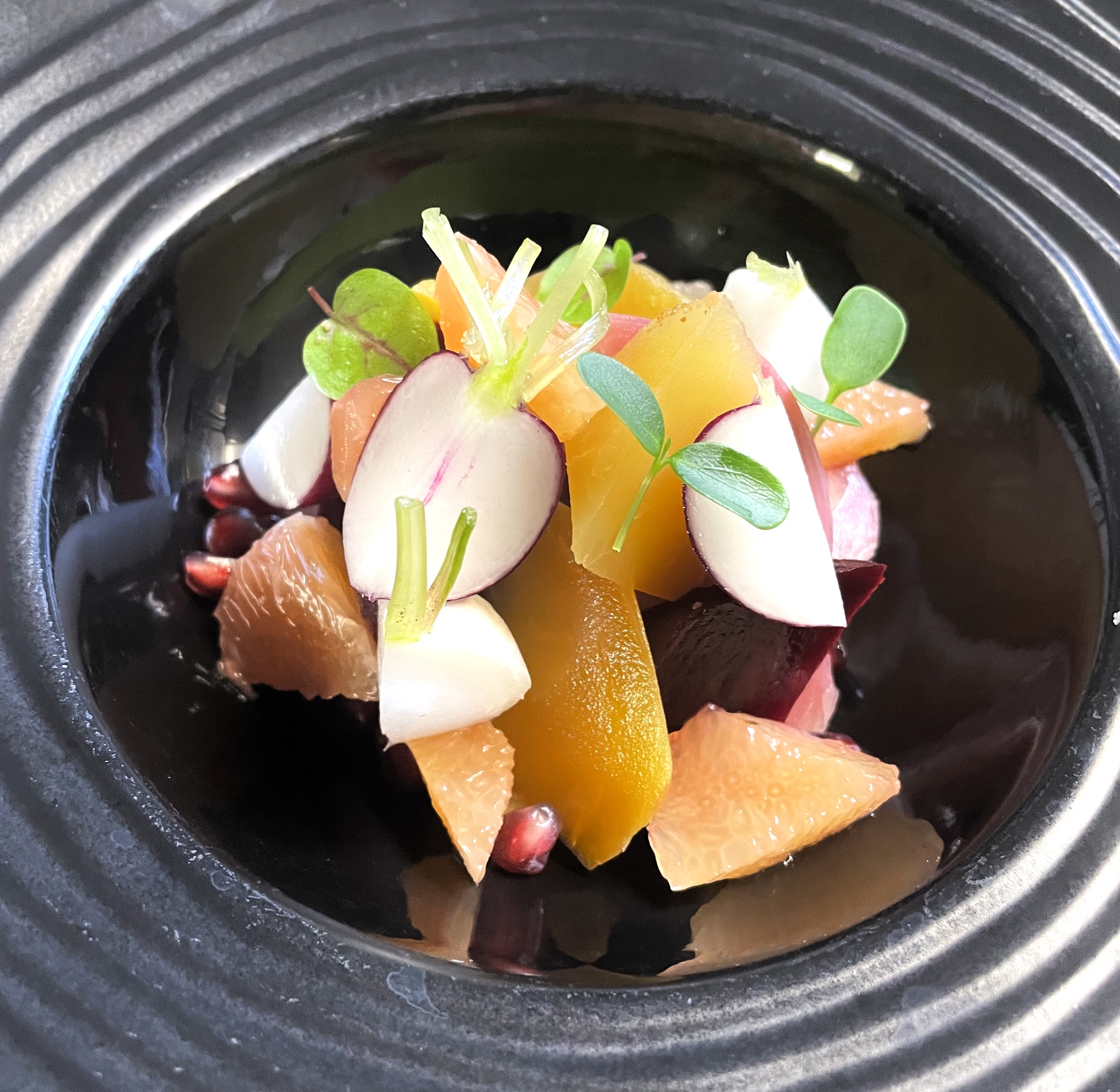 Le temps semblait s'être arrêté dès notre arrivée dans ce lieu enchanteur. L'accueil chaleureux nous enveloppa comme une étreinte réconfortante, promesse des délices à venir. Chaque bouchée fut une révélation, l'entrée fut câlin pour nos papilles. Les saveurs dansaient sur nos langues, éveillant des souvenirs enfouis et des émotions oubliées. C'était comme si chaque ingrédient avait été choisi avec soin pour nous offrir un moment de pure félicité. Le repas se déroula tel un rêve éveillé, où chaque plat nous transportait vers de nouveaux horizons gustatifs. Le service, attentif et discret, ajoutait à cette atmosphère presque irréelle. Entre la cuisine et le service, une harmonie parfaite régnait, créant une symphonie culinaire dont nous étions les spectateurs privilégiés. Chaque instant passé dans ce restaurant semblait tissé de fils d'or, formant une tapisserie de souvenirs que nous chérirons longtemps. En quittant les lieux, nous avions l'impression d'avoir vécu une expérience unique, comme si nous avions traversé un portail vers un monde où le temps et les saveurs s'entremêlent pour créer des moments de pure magie.