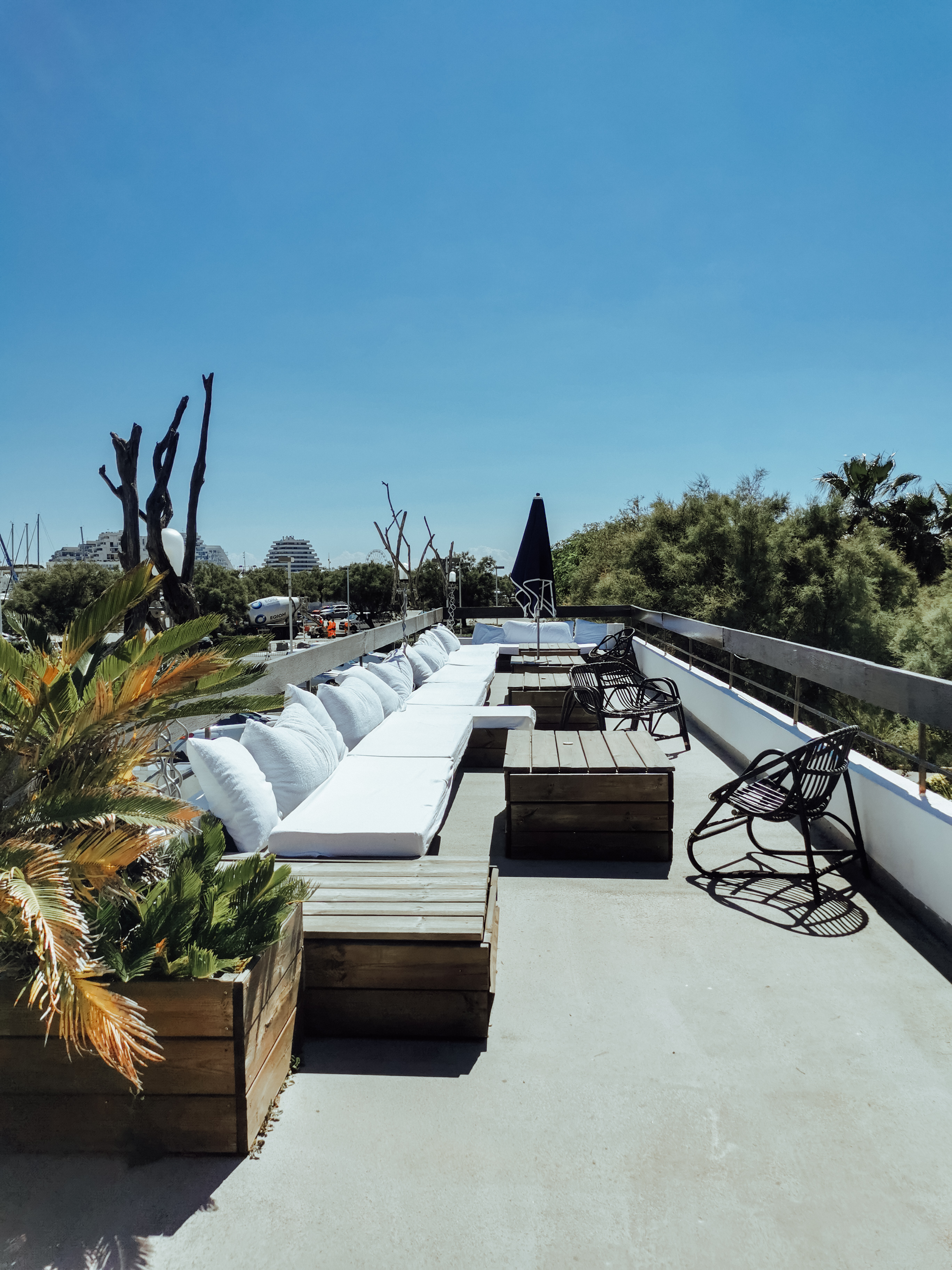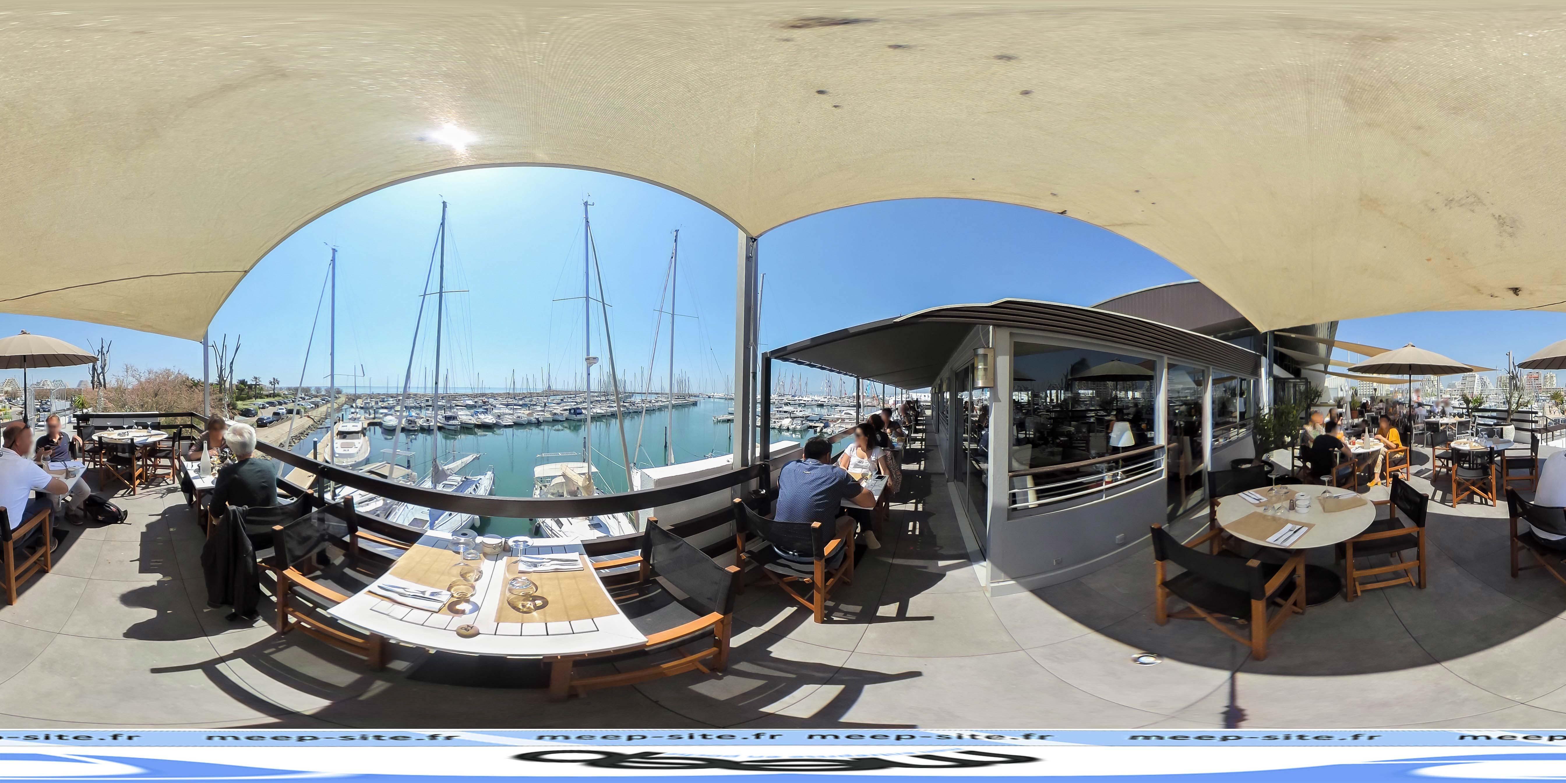 Restaurant prestigieux à la grande Motte avec vue magnifique sur le port depuis la terrasse qui surplombe.