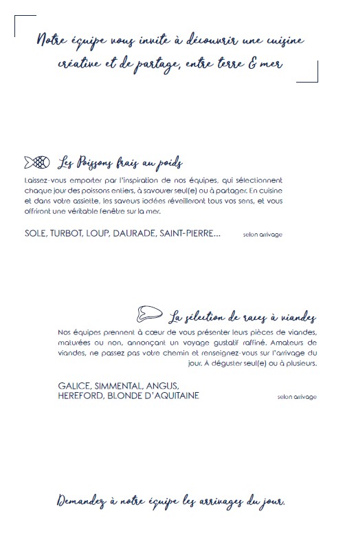 Le cadre, les produits de la mer apprêtés de si belle façon, les vins succulents proposés en accompagnement, le savoir-faire et le professionnaslime du personnel tout à votre écoute et votre service, tout est réuni pour vous faire passer un moment inoubliable !