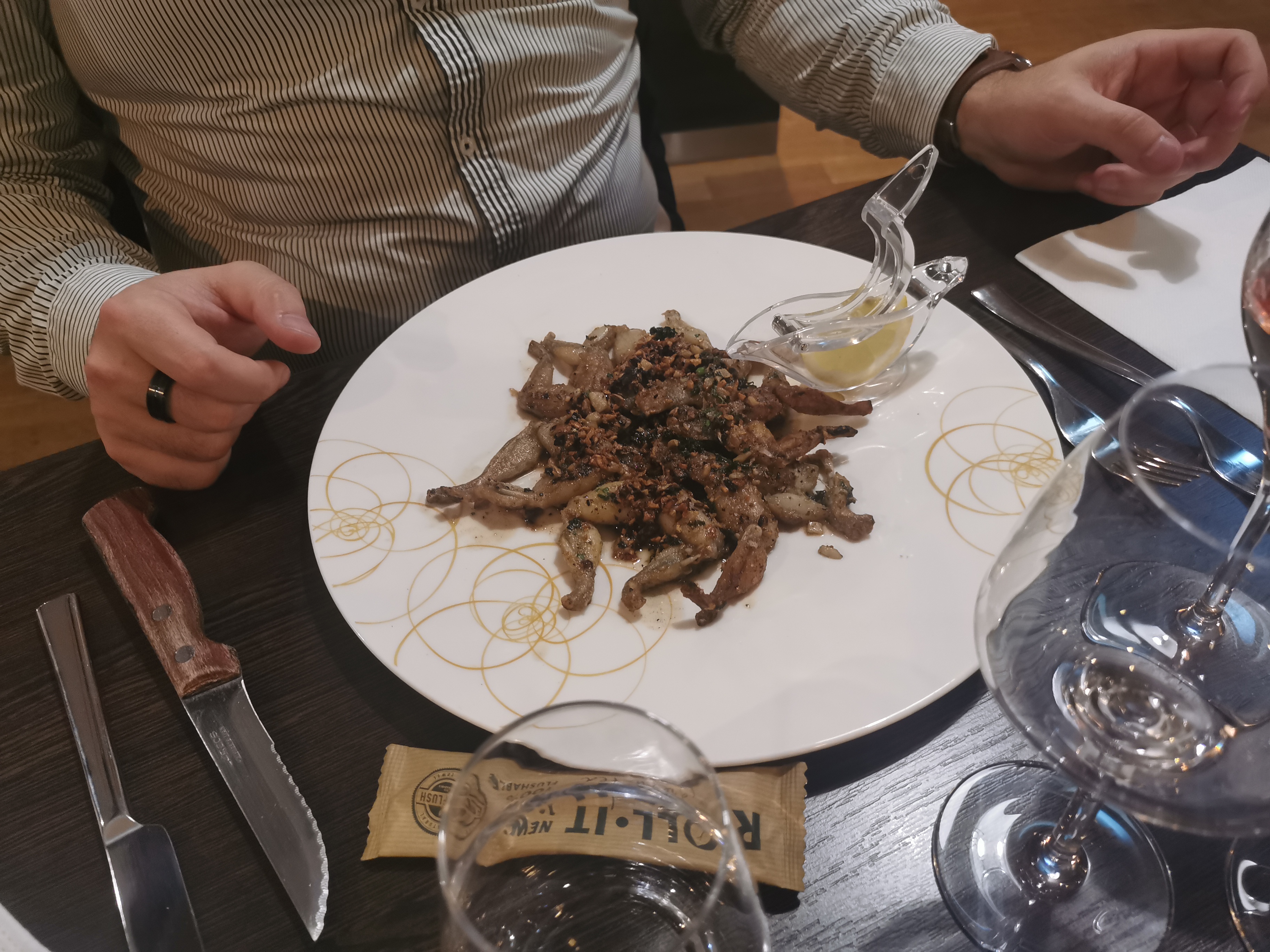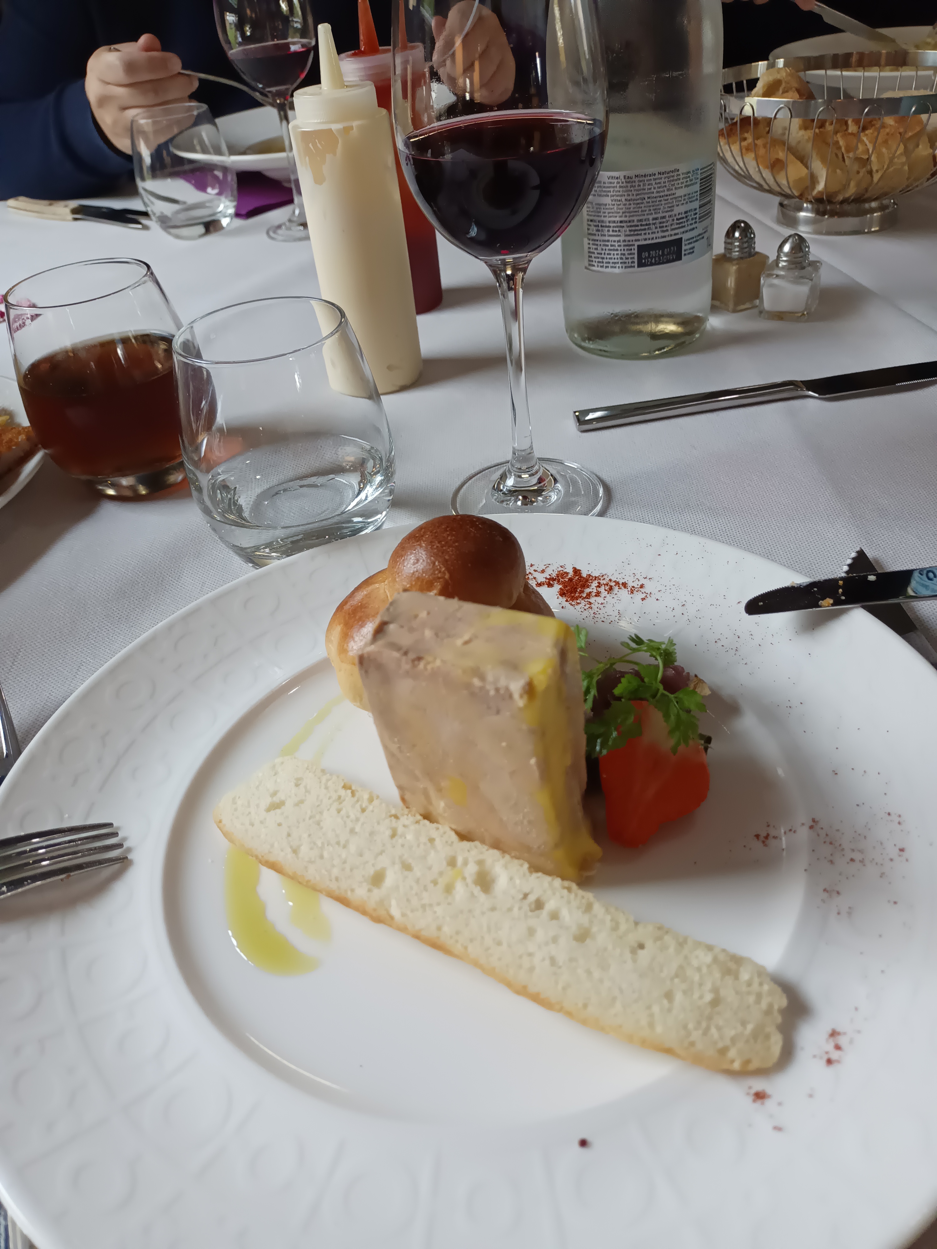 Accueil sympathique, endroit convivial mais très bruyant. Pain surgelé et un morceau rassis. 5/6 tranches de magret de canard et non « magret » comme écrit sur la carte. Frites pas bien cuites…