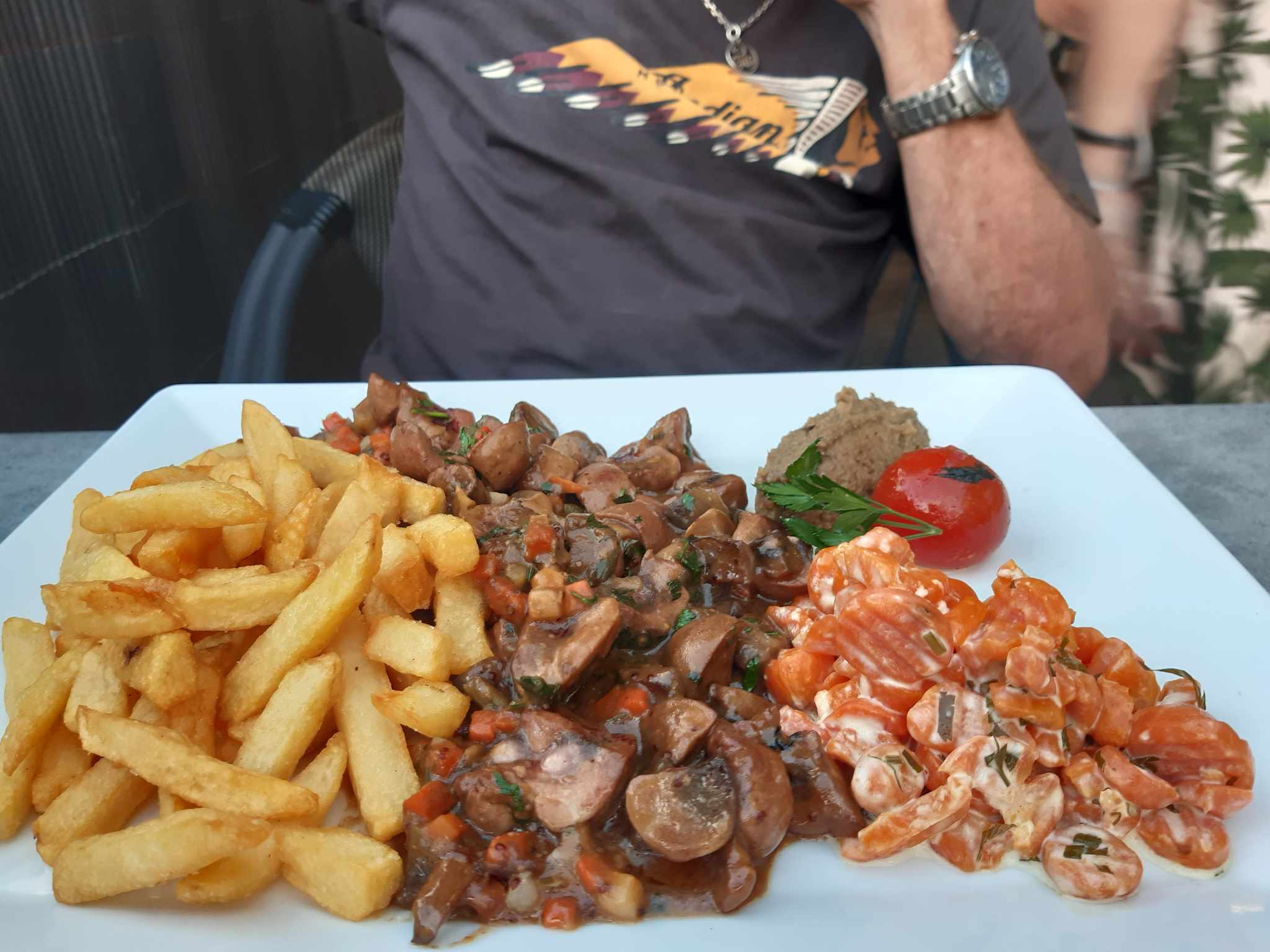 Nouvelle visite hier avec comme choix la brochette de bœuf, sauce champignons, frite maison ! Un régal ! Service très correct également. Je recommande fortement cet établissement. PS - Un petit fond de musique aurait été top. A très bientôt chez vous.