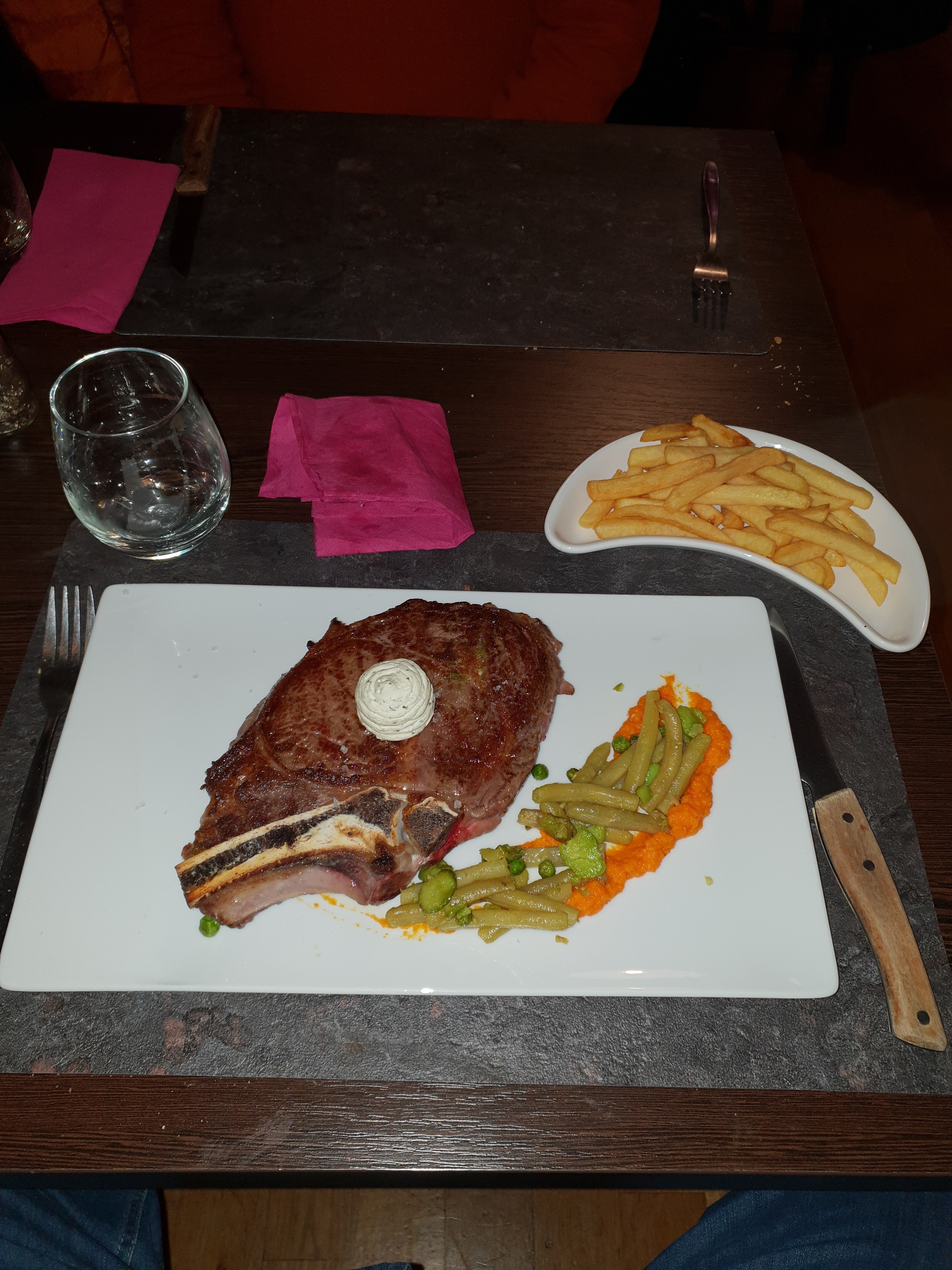 Bonjour madame, si nos souvenirs sont bons, vous êtes venus le soir de la st Valentin. Ce jour et comme vous le saviez au préalable il y avait un menu imposé avec un choix à faire pour l'entrée et pour le plat. Vous nous avez demandé des frites comme accompagnement, cependant nous ne pouvions pas remettre la friteuse en route et éplucher des pommes de terre pour une seule personne car vous étiez la seule personne à en demander. L'accompagnement initial était galette de pommes de terre.... Le serveur qui est aussi responsable de salle, après m'avoir consulté, vous à proposé à la place, des légumes, de la polenta ou des pâtes. Vous avez refusé ses propositions et avez décidé de quitter le restaurant après l'apéritif parce qu'il n'y avait pas de frites.... Un soir de St Valentin et avec un menu imposé. Je prend bonne note de votre mécontentement mais à notre époque ou l'énergie est hors de prix je ne comprend pas votre réaction. Bonne journée