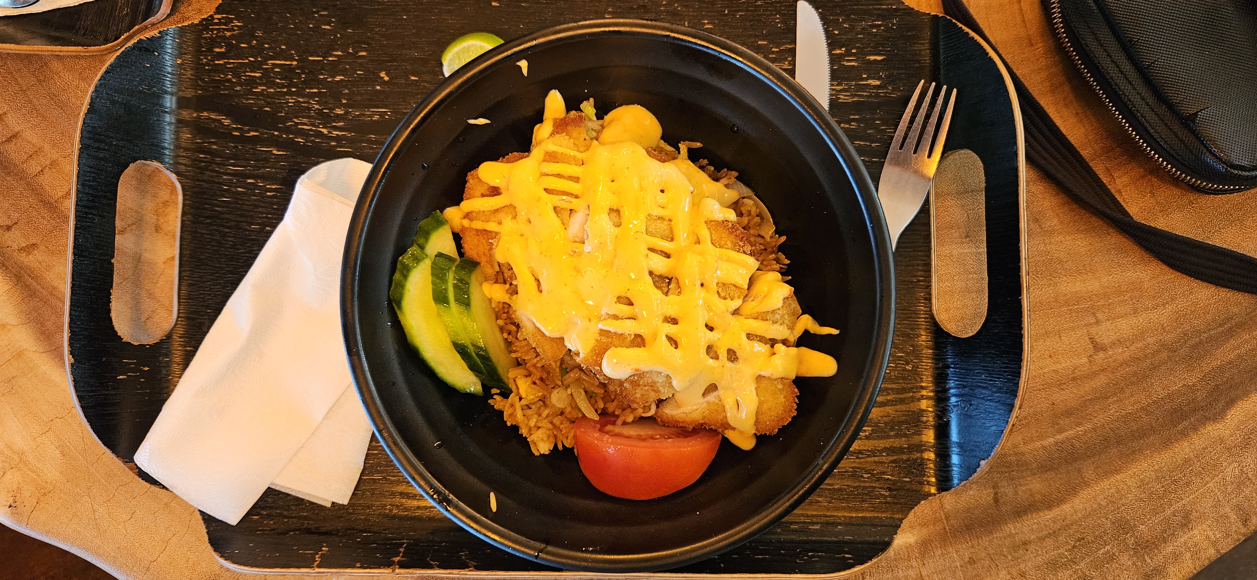 Commençons par un whaouh,2 bornes à disposition ou passer directement avec la personne en caisse, d'ailleur cette accueil était agréable, rapide, vous pouvez manger dehors sur place, ou à emporter, tout est fait maison, une petite ouverture sur la cuisine, et nous comprenons que nôtre choix est la meilleure,il y à pour tout les goûts , hamburgers 🍔, Thaï,il y à même de la viande, italien, vous avez des fruits frais, des gâteaux maison, et du thé glacée n'hésitez pas c'est bon et ça rafraîchie,franchement aucun regret , c'est pas à côté de chez-moi,mais je n'hésiterais pas à y retourner, d'ailleur je recommande fortement. Merci pour cette qualité.