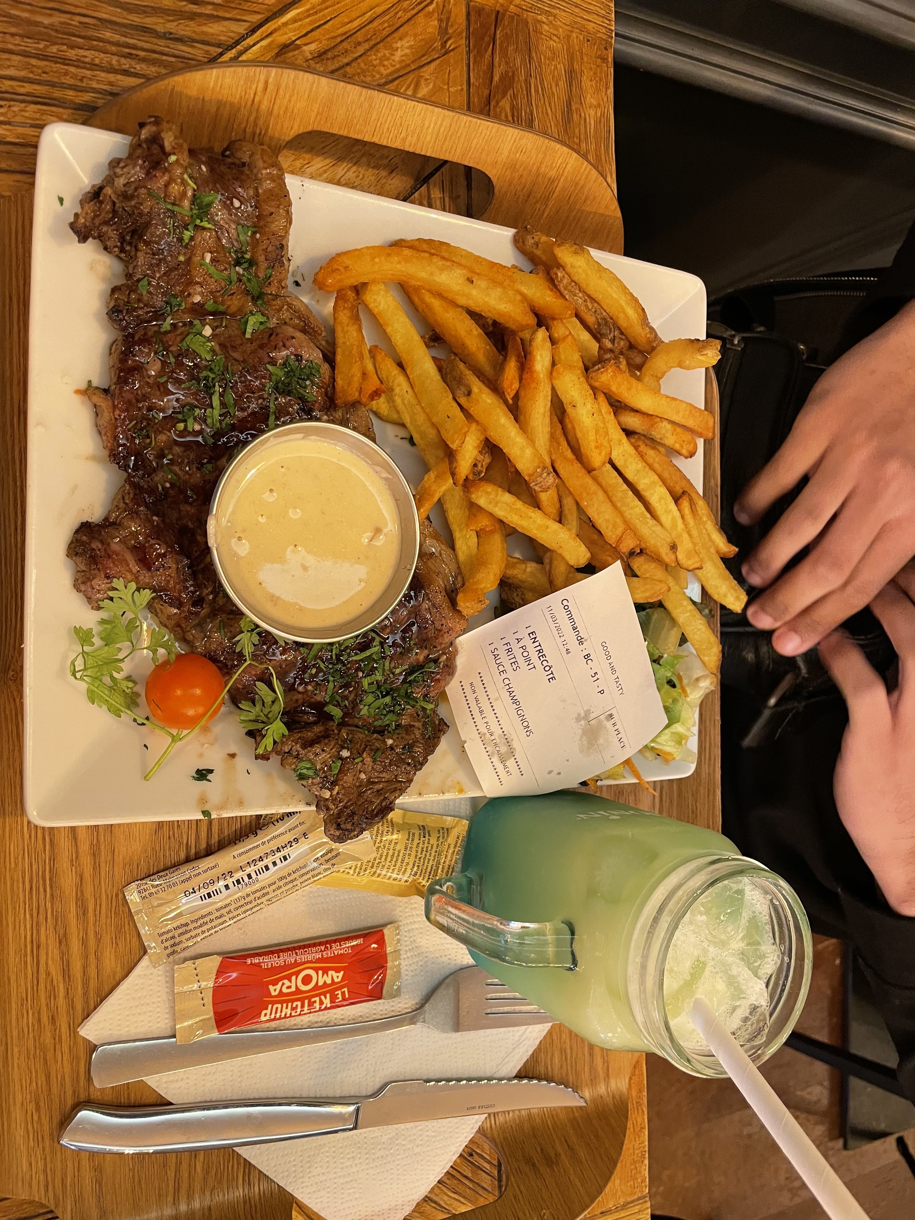 Ambiance parfait, service rapide et repas de qualité. Plat : tigre qui pleure Frites bacon fromage Incroyable !