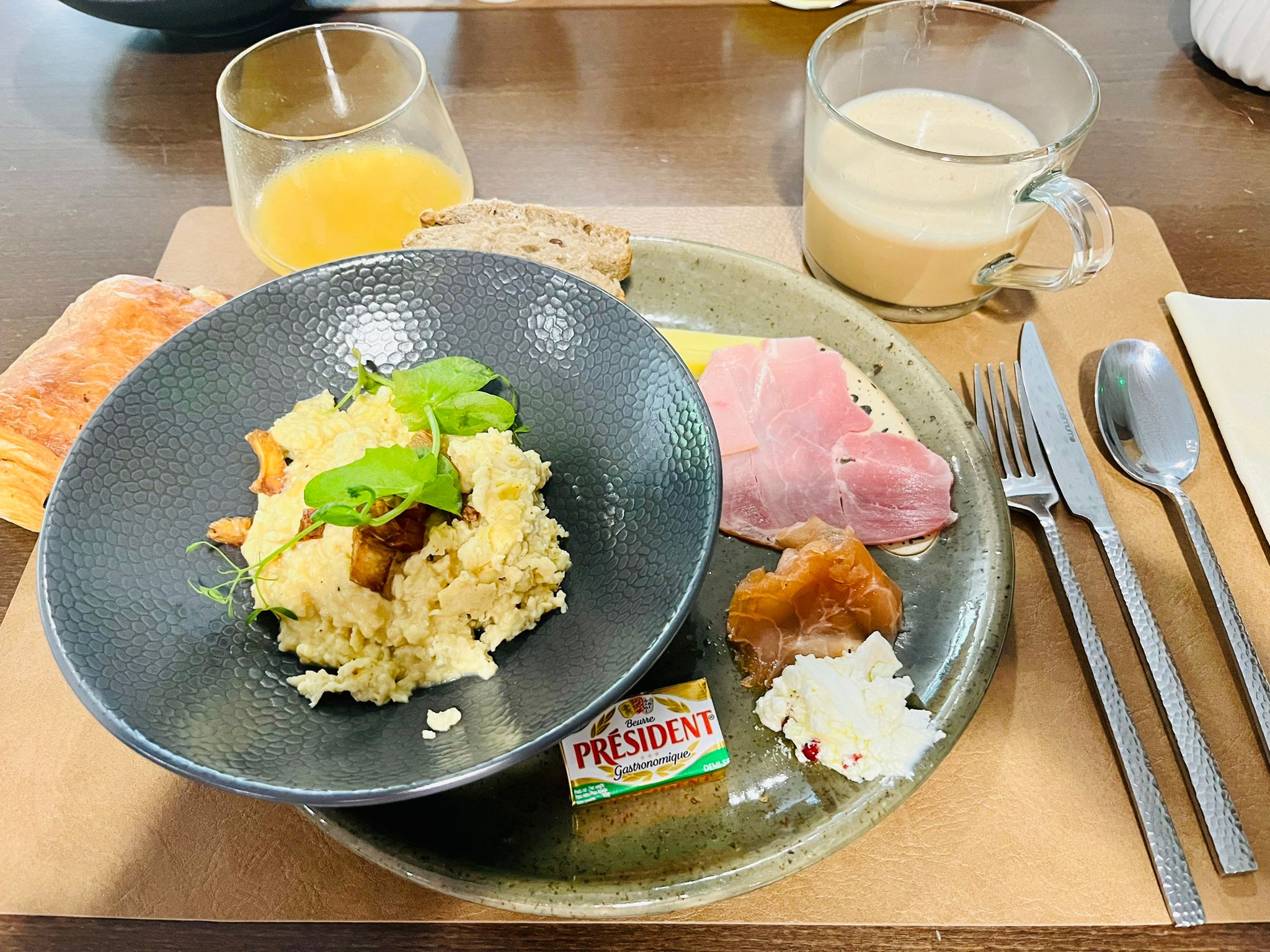 Posté le 25/08/2023 à 23:17"Un hôtel qui vu de l’extérieur semble classique. Une fois à l’intérieur, nous découvrons un havre de paix donnant sur la nature avec une décoration moderne et lumineuse. Le personnel est très accueillant et bienveillant. Pour le repas, je me suis laissée tentée par l’entrée et le plat végétarien, une vraie merveille. Les légumes étaient parfaits et les saveurs incroyables. La literie est confortable et les chambres très bien équipées. Tout est fait pour préserver un esprit cocooning. Nous étions juste de passage mais nous reviendrons plus longuement la prochaine fois. Un grand merci à toute l’équipe."