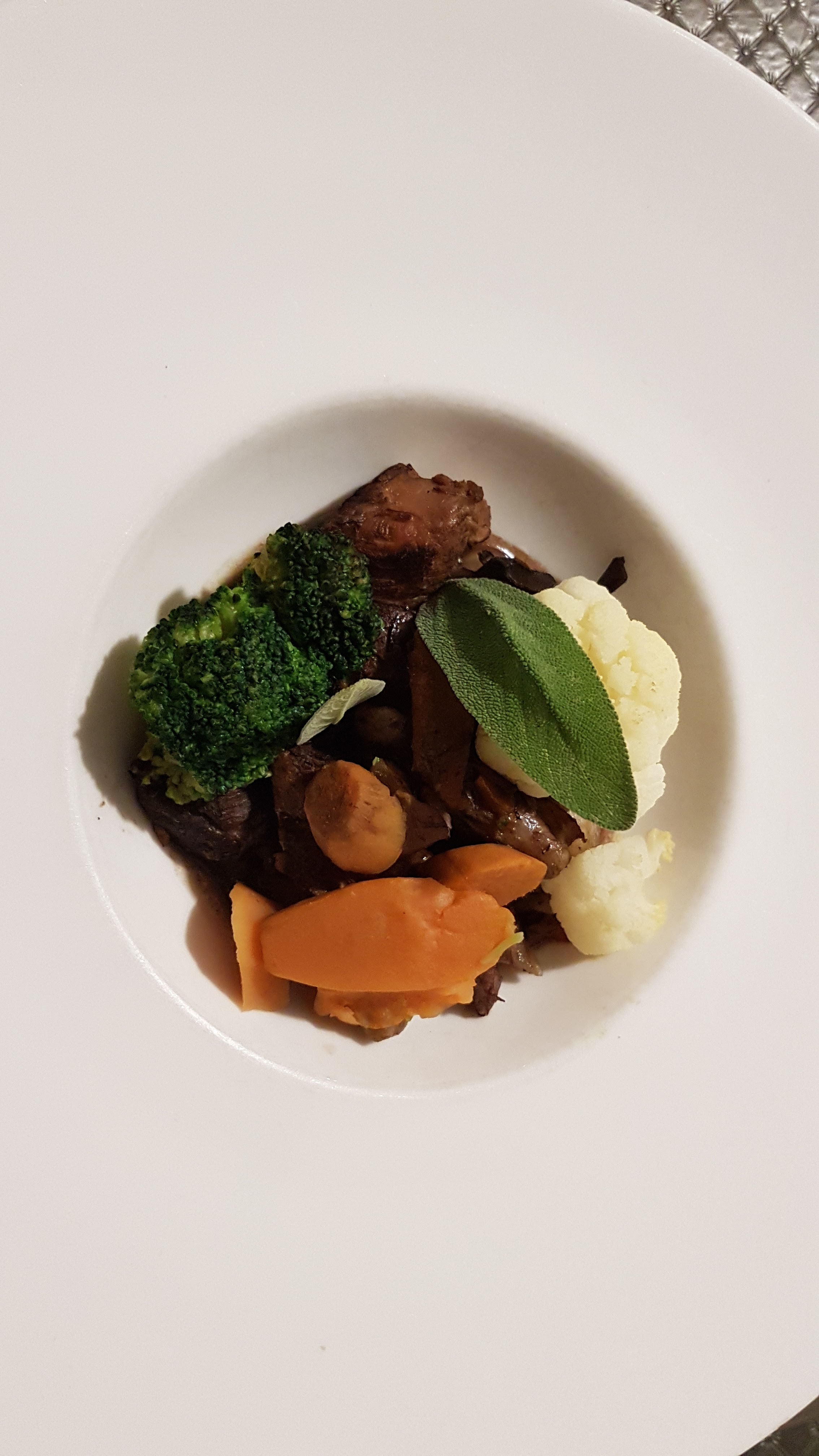 Posté le 24/01/2020 à 14:38"Entrée au titre prétentieux, en fait des escargots petit gris en sauce presque insipide avec une tranche de lard cartonneuse, donc décevante. La viande à suivre, du sanglier braisé dans une sauce au vin, avait un goût excellent mais le sanglier était trop sec et la sauce trop réduite et parcimonieuse. Encore une déception. Bons fromages de chèvre du coin, bon dessert chocolat et châtaignes, bon vin Croze Hermitage rouge au juste prix."