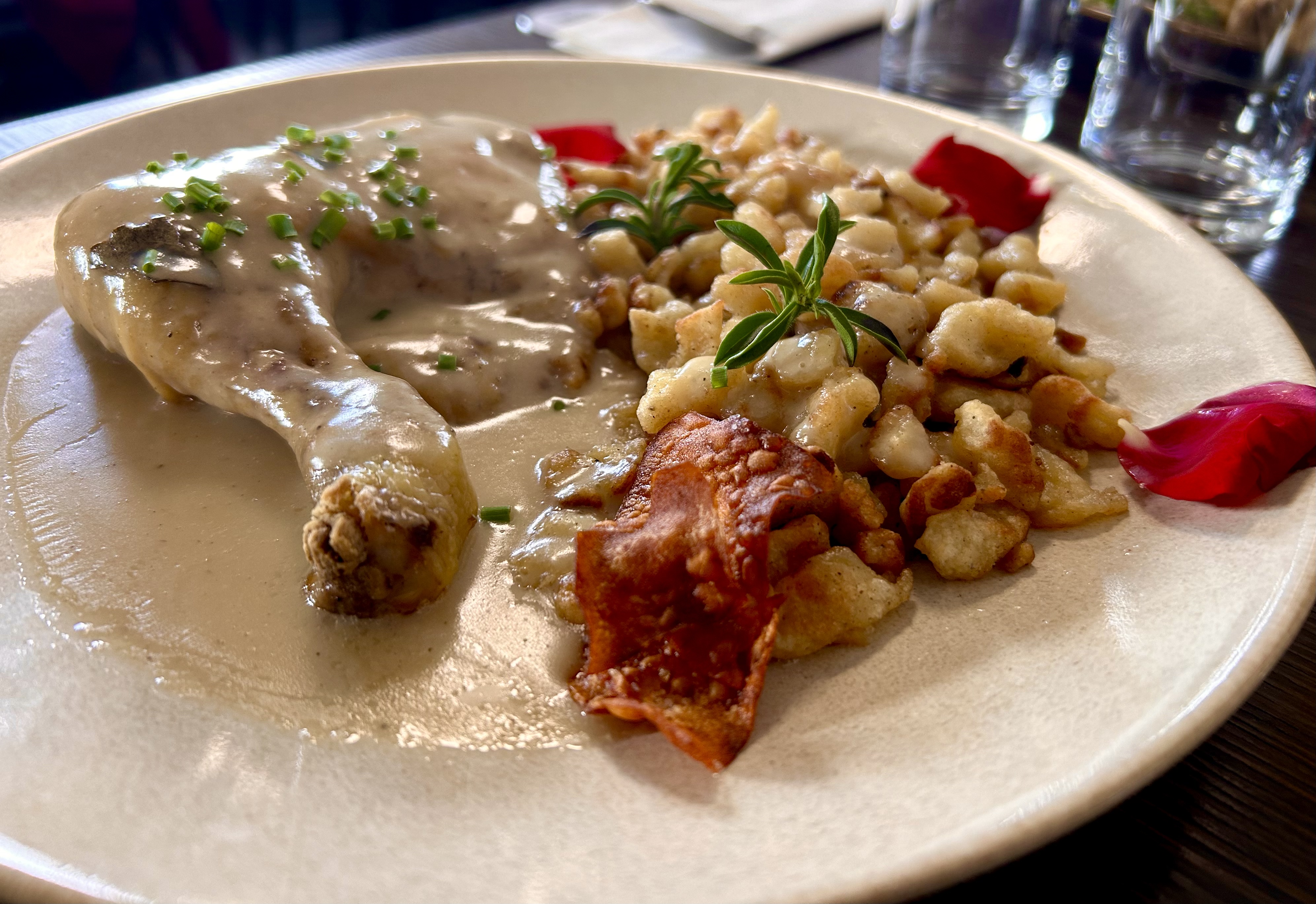 Plats délicieux, de l'entrée au dessert, avec un apéritif, un verre de pinot gris excellent, diversité et choix de semaine en semaine avec des produits de qualité et de saison, la cuisine ici se fait avec passion et ça se ressent ! Service très agréable également ! Un restaurant qui donne envie d'y revenir !