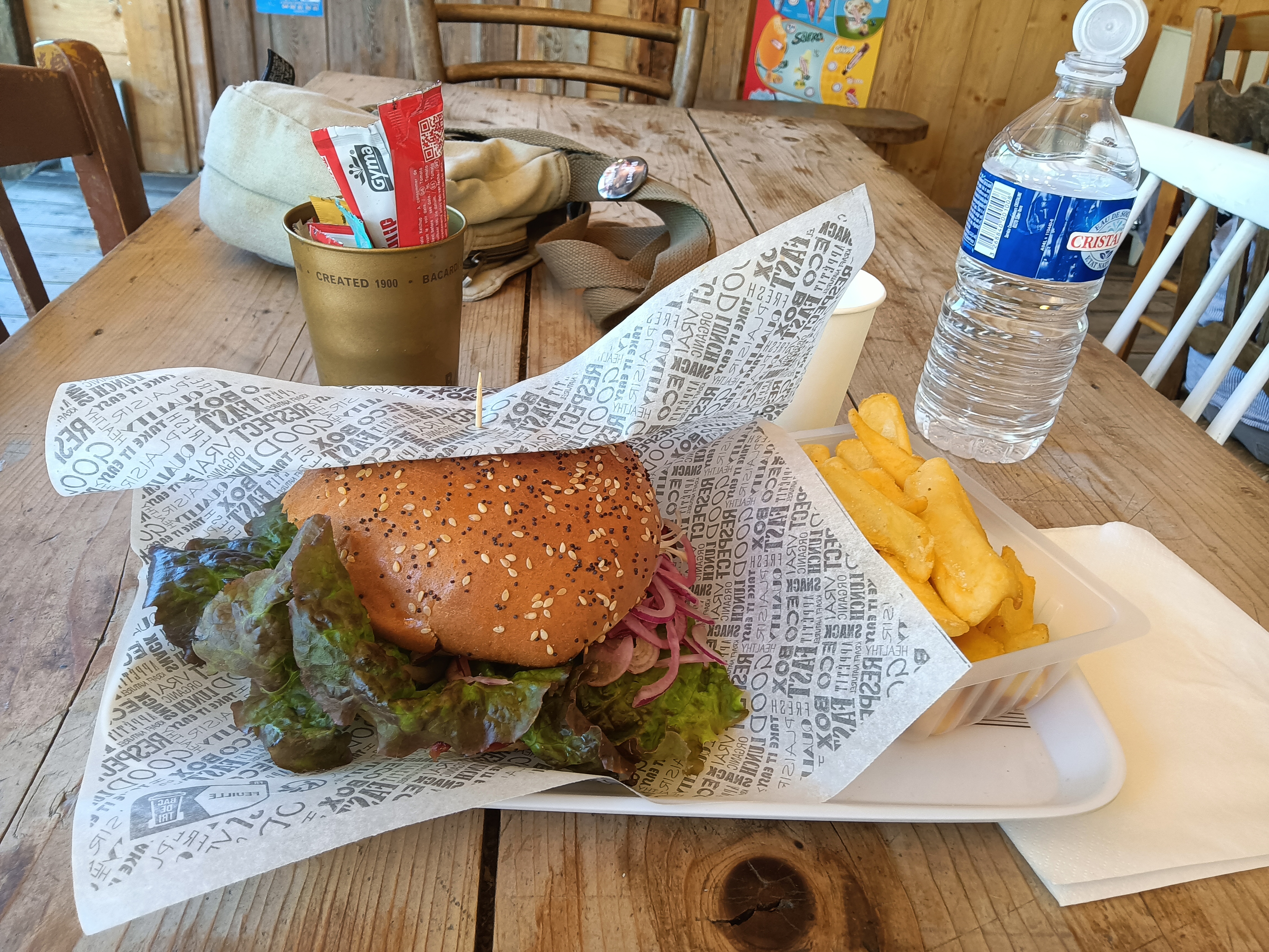 Hamburger inattendu au milieu d'une très belle balade, je le recommande, top si vous connaissez le français et n'avez pas besoin des toilettes :-)