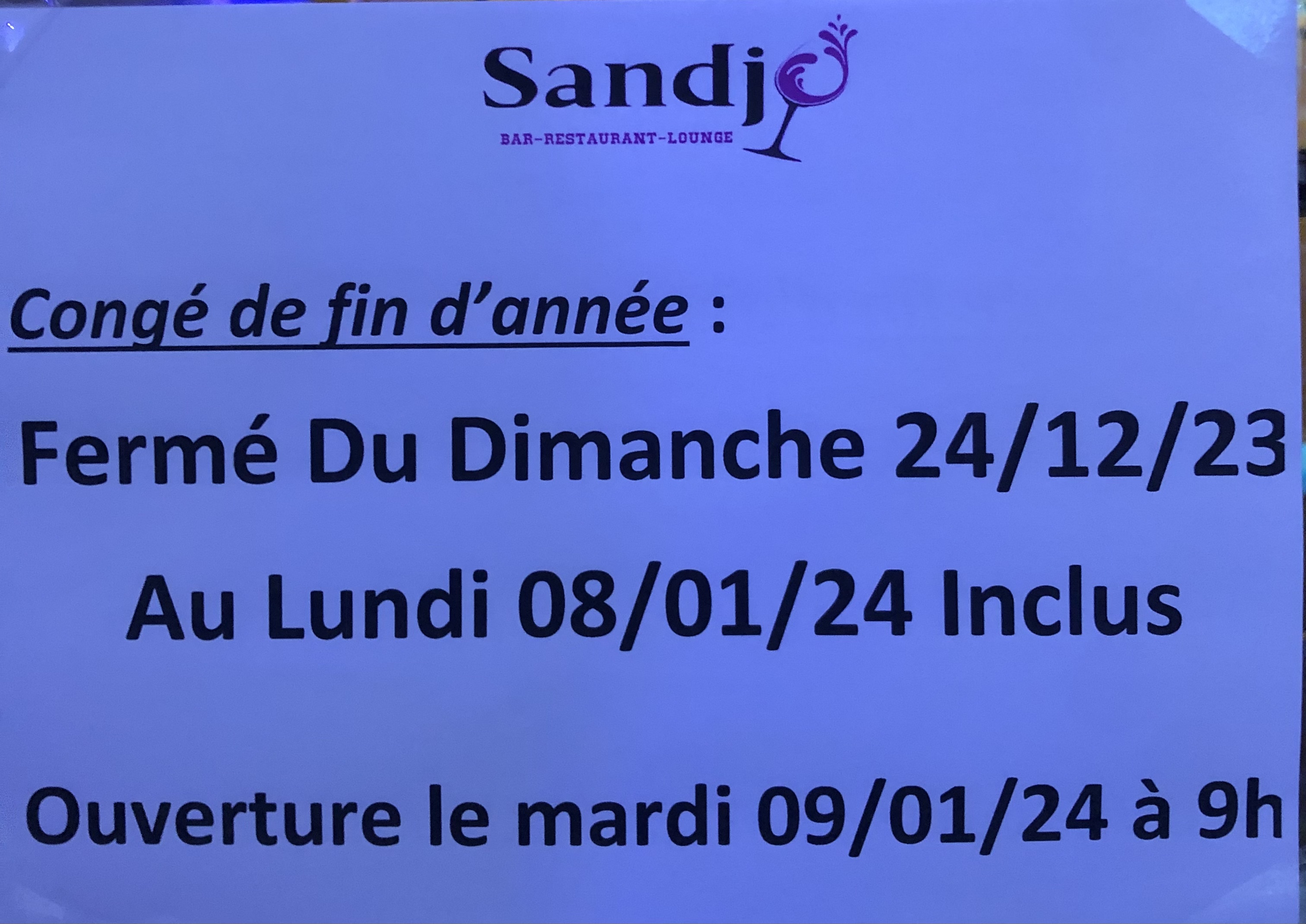 Bonjour, Je fréquente maintenant ce restaurant depuis plus de 1 an, en moyenne 1 fois par semaine, alors je vais me permettre de répondre aux quelques commentaires désobligeants qui disent (entre autre) que le restaurant est à fuir (dixit M. Bruno Rizzon) ou que le menu est banal ou manque de poisson...(dixit Mme Florence Tixier) et j'en passe... Pour un restaurant qui est installé dans un tout petit village sachez qu'il n'a rien à envier aux grands restaurants de ville!! Au Sandjo, tout est fait maison, de l'entrée au dessert, les produits utilisés sont le plus local possible, les délicieuses frites maison faites avec les patates du coin sont excellentes... Un menu du jour à moins de 19€ avec des produits de qualités vous ne trouverez pas facilement... Il y a une carte qui fait 2 pages si le menu ne vous convient pas!!!! Depuis le temps, j'ai pu goûter à tout, et je n'ai jamais été déçue!!! Il y en a quasiment pour tous les goûts, je dis quasiment car les éternels insatisfaits, ou simplement les Haters (à qui il faudrait dérouler le tapis rouge et se soumettre à toutes leurs exigences sans broncher) seront toujours là pour être de mauvaise foi, méchants, intransigeants et surtout CHIANTS, ils chercheront le moindre faux pas, la moindre petite bête pour descendre en flèches tous les établissements où ils passeront. A tous ceux là, restez bien chez vous, et laissez travailler tranquille les honnêtes gens qui ne vous ont rien demandé. A tous je vous recommande d'aller vous faire votre propre opinion, n'hésitez pas a réserver, vous verrez vous serez très bien accueillis, le barman est super et d'un calme olympien (même face aux plus irrespectueux) et la Cheffe cuisine avec amour et se plie en 4 pour les demandes ses clients. Aujourd'hui, caché derrière son écran, la critique gratuite est devenue tellement facile, c'est bien navrant !!! Bon courage Sandrine et Johnny, ne changez rien! Bien cordialement une cliente fidèle
