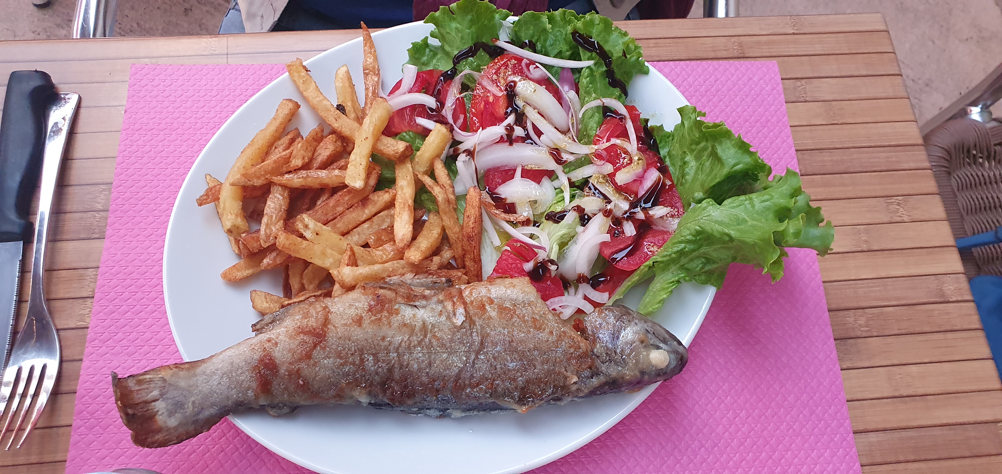 C’est bon avec des produits frais de la région, sympathique, bien situé. Le patron est charmant. Nous étions 14 et tous enchantés (menu unique pour toute la famille). Je recommande vivement !!!