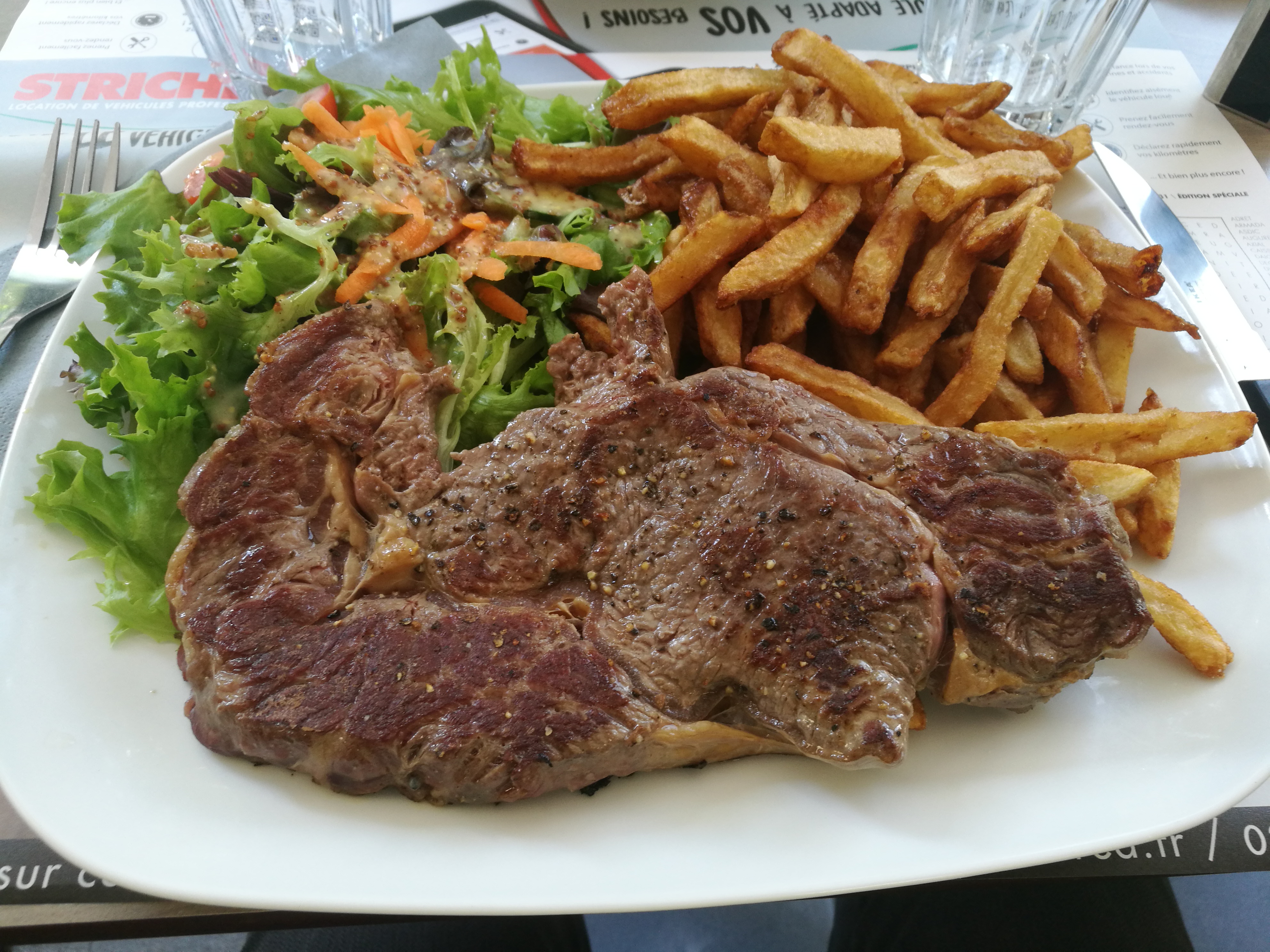 bonjour, j'ai commandé une entrecôte a 15 euros , servi dans une assiette de cantique avec quelques frites froide en accompagnement sans salade ah oui! c'est en supplément !, attente 45 min !! j'en parle au serveur , homme arrogant et pas très futé qui m'en voit bouler ! je part et je suis pas prêt de revenir ! a éviter absolument
