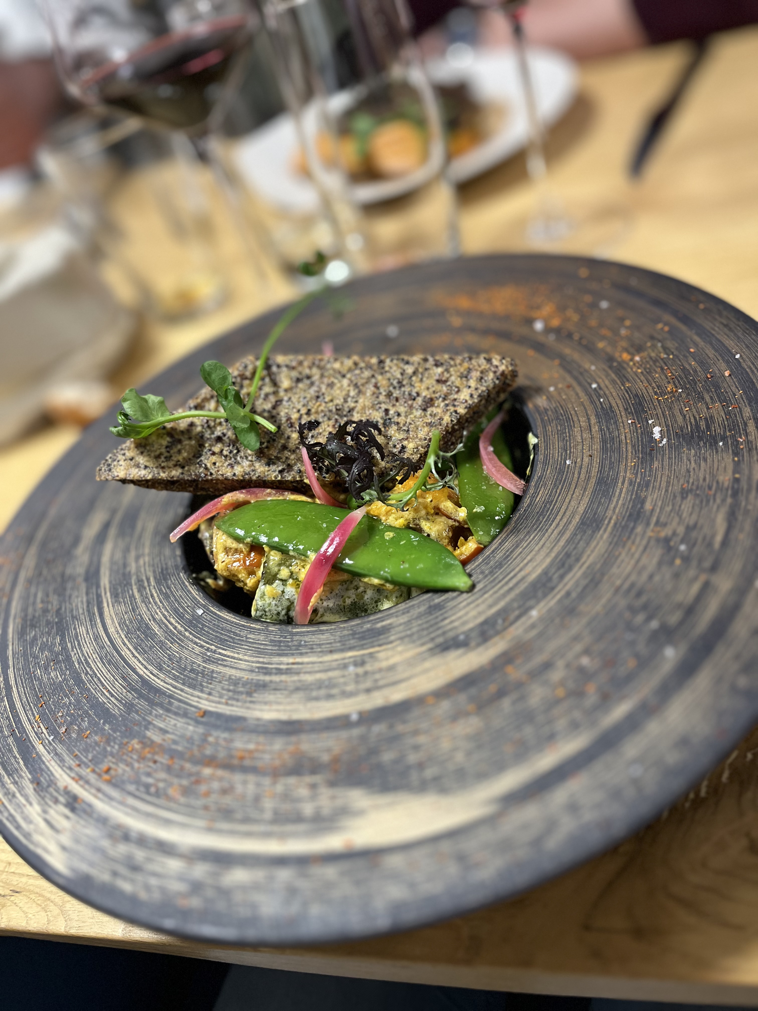 Un accueil des plus chaleureux dans un décors bohème chics en terrasse et design à l’intérieur,un choix de menu et vins intéressants (j’ai eu envie de tout manger ) Une cuisine moderne goûtue audacieuse et raffinée. Venue pour fêter mon départ en Nouvelle Zélande , j’ai le petit regret de ne pas pouvoir venir goûter les autres repas avant une année. Petit potager à l’entrée ( la framboise était délicieuse 🤣) On sens a travers les plats l’envie de nous faire découvrir , il y a un vrai message et un savoir faire. Vous passez à côté de quelque chose si vous ne vous y arrêtez pas. Merci pour ce merveilleux moment et à bientôt 👋