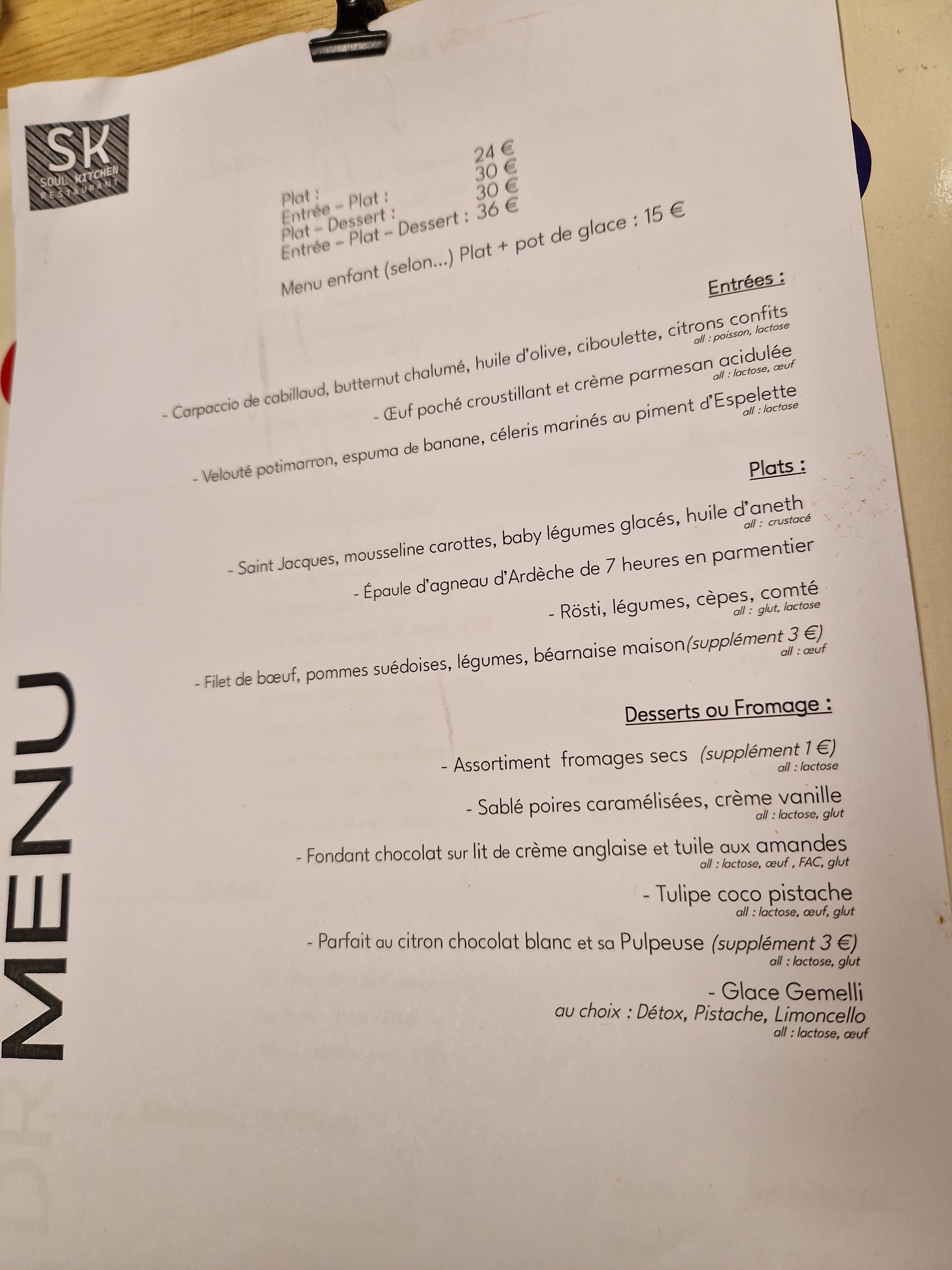 Le gérant est venu nous chercher au parking lorsqu'il a fini de préparer une table pour nous accueillir ! Super acceuil! Très bonne cuisine et bonne ambiance chaleureuse. Très bonne adresse à retenir ! Merci à l'équipe de Soul Kitchen!!