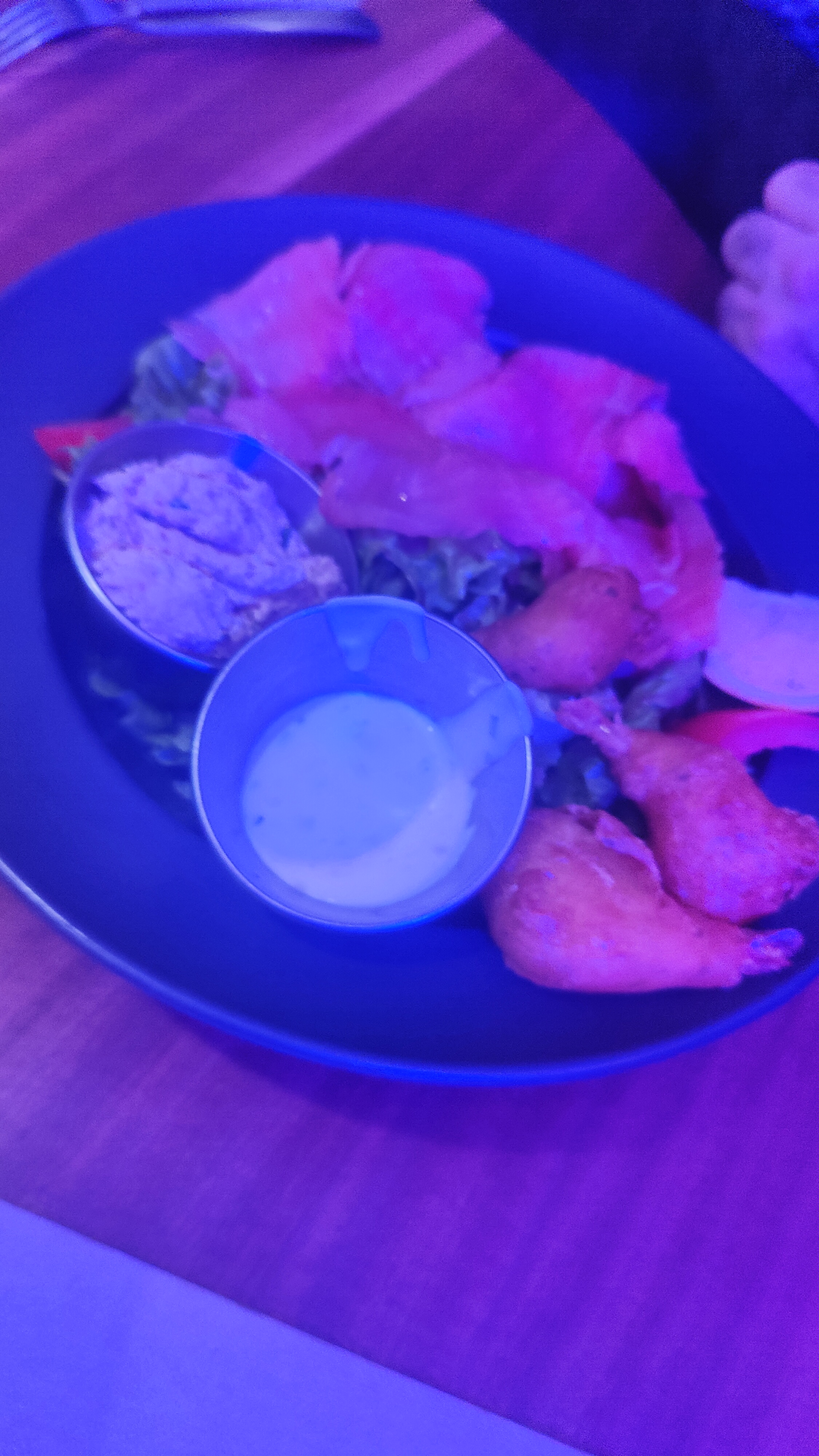 sur les conseils de la serveuse super agréable, j'ai commandé une salade de la mer, copieuse et savoureuse et et également la tarte tatin en dessert qui était excellente