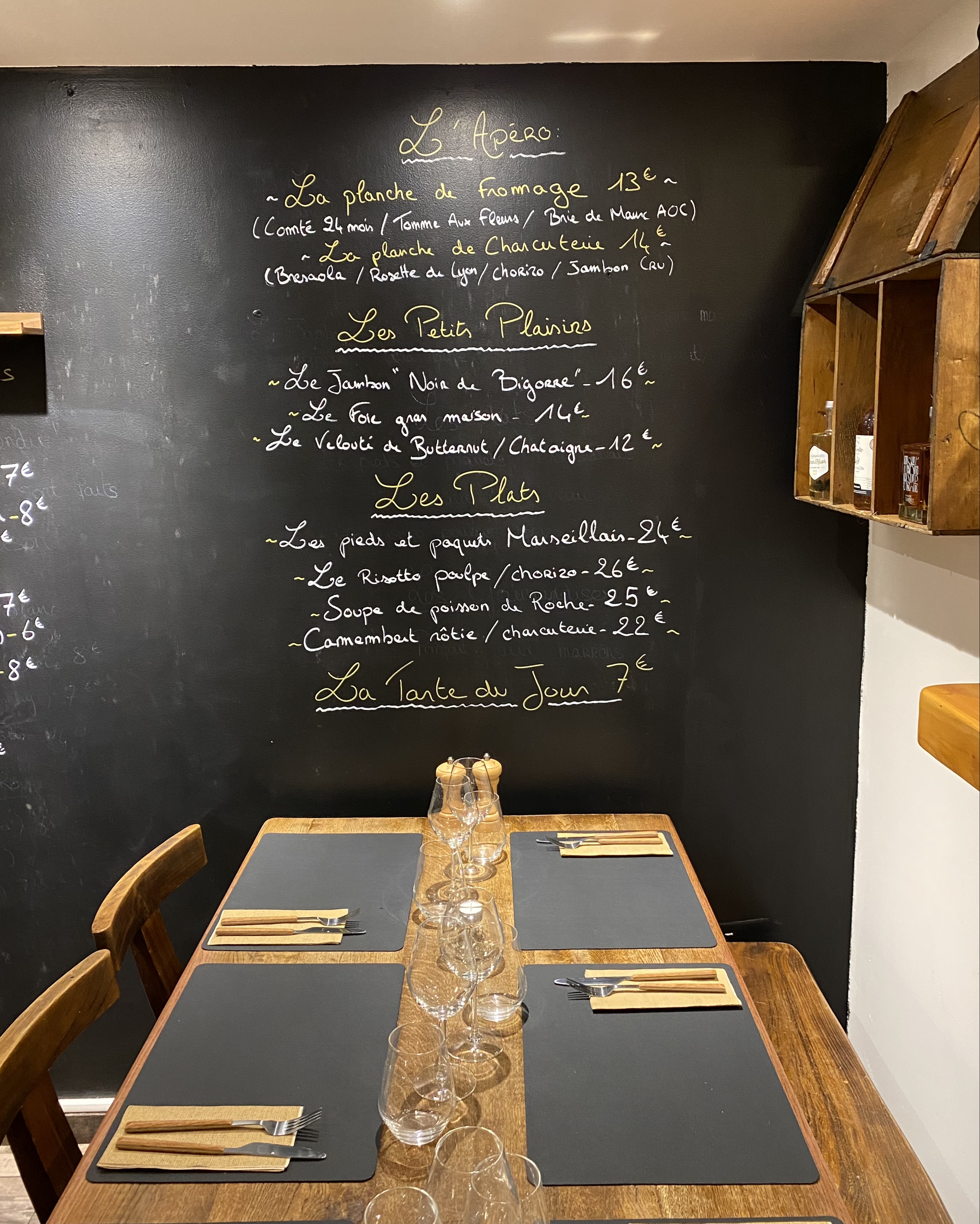 Un cadre hyper sympa, des restaurateurs encore plus et des plats, à la hauteur des vins . A conseiller pour un moment agréable des papilles et du reste.