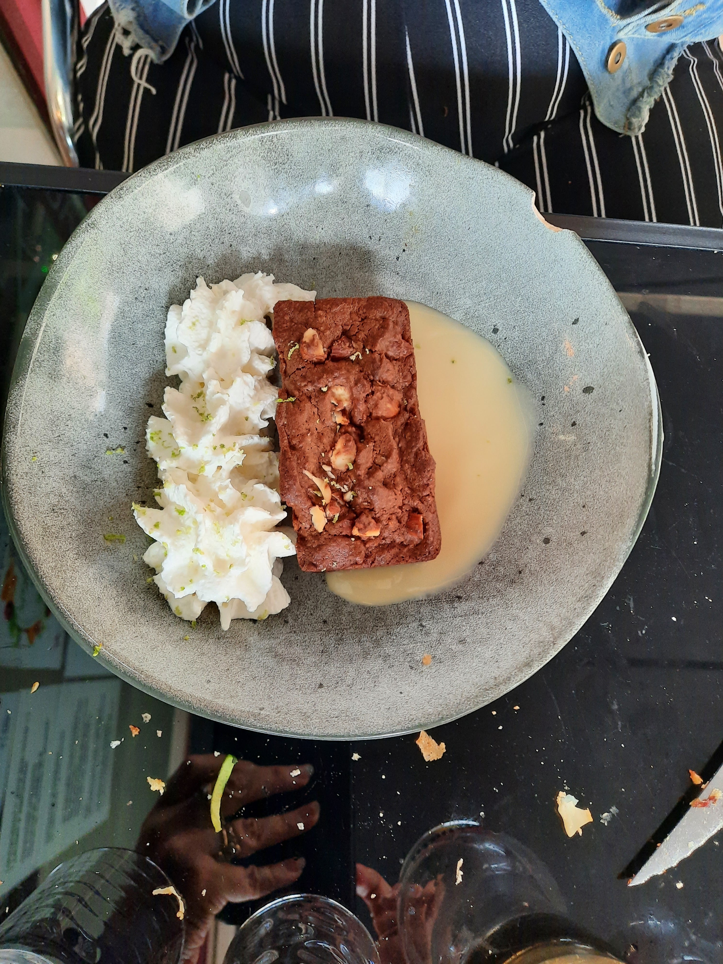 Plats goûteux mais portions minimalistes. Du coup le tarif plat+dessert semble abusif.